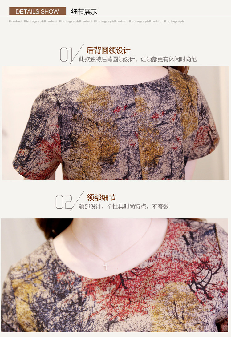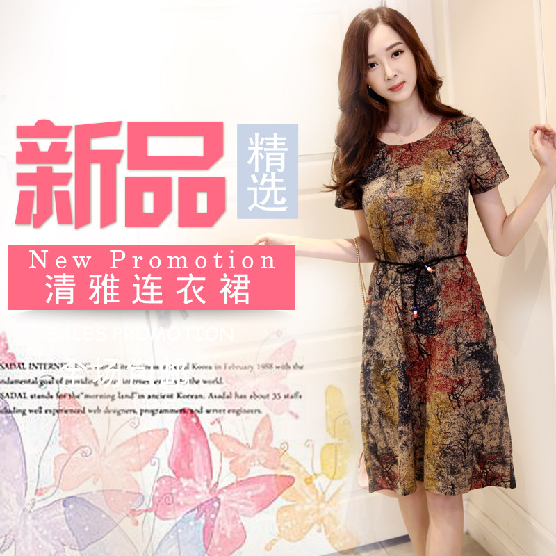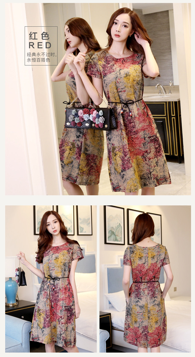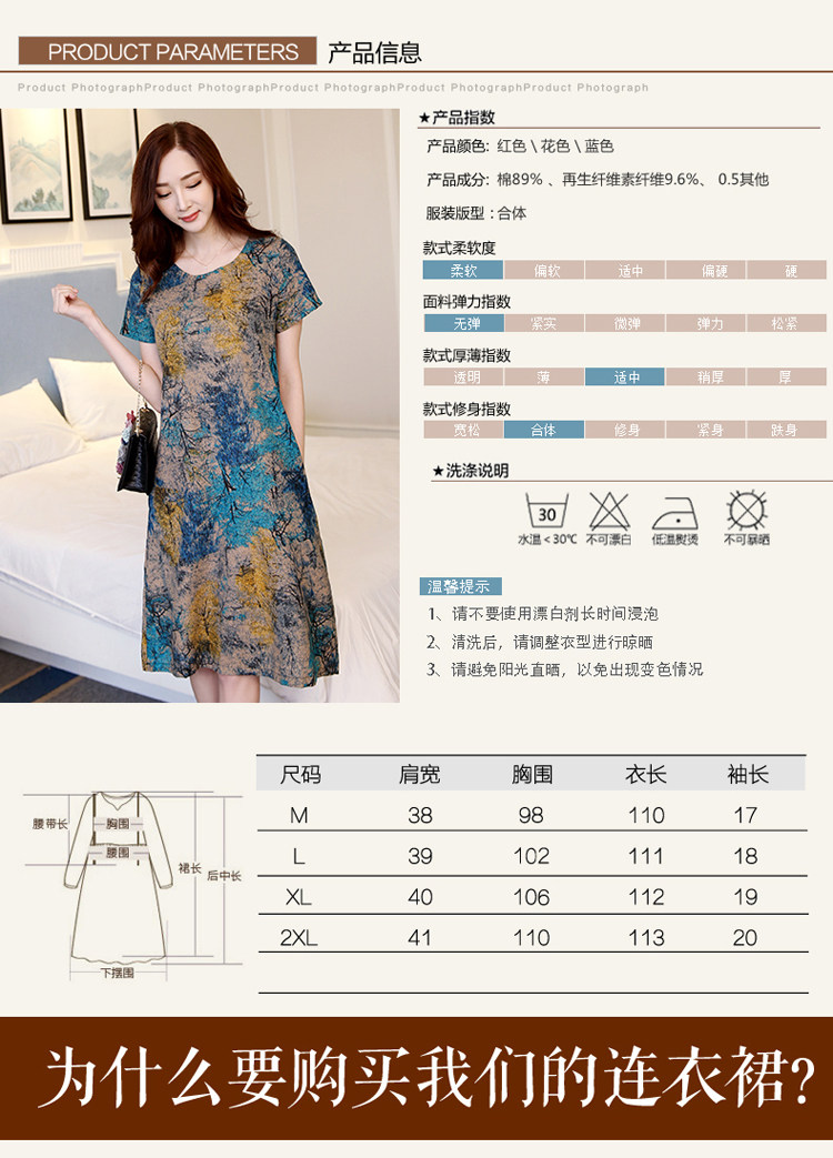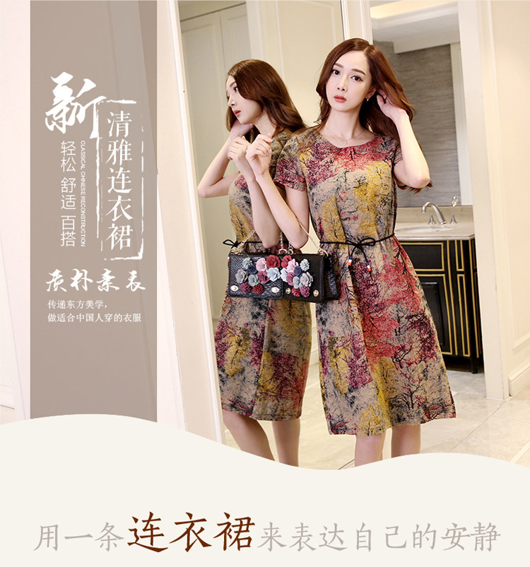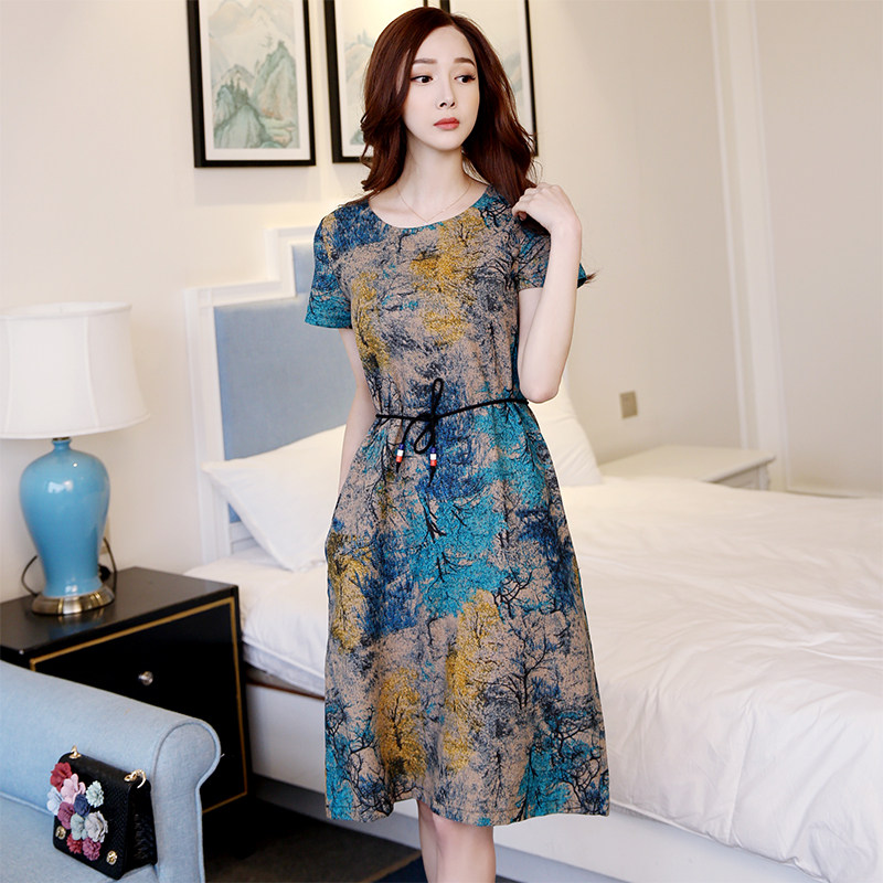 Летнее платье, мини-юбка, длинная юбка, подходит для полных девушек, большой размер, из хлопка и льна, короткий рукав, свободный крой, средней длины