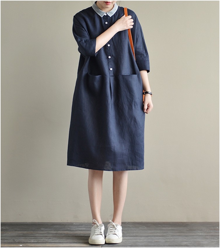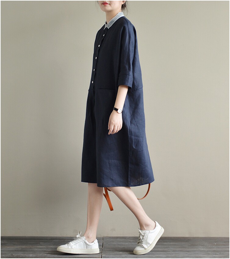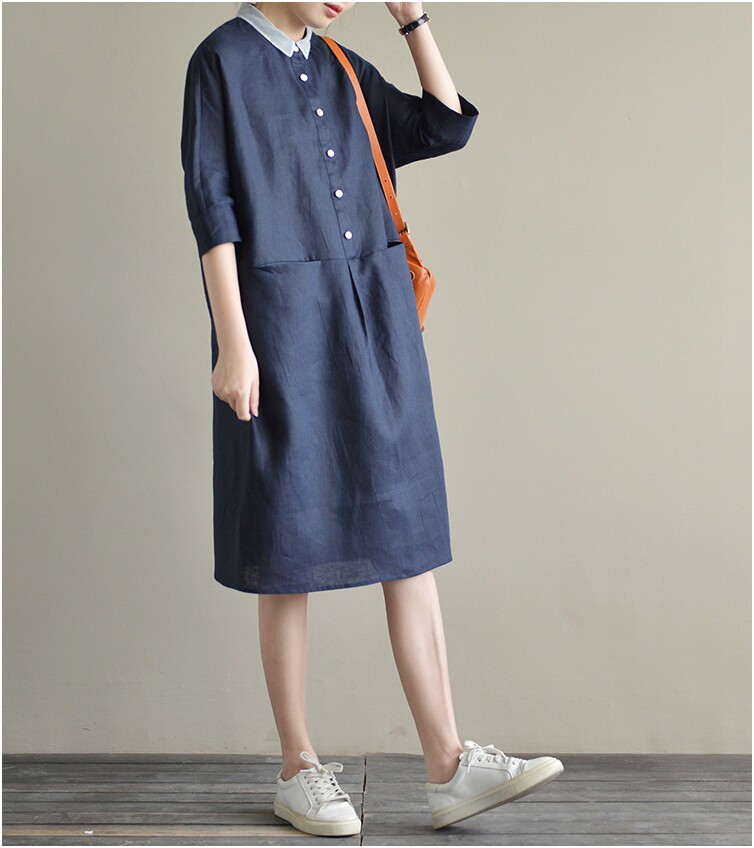 Летнее платье, большой размер, из хлопка и льна, свободный крой