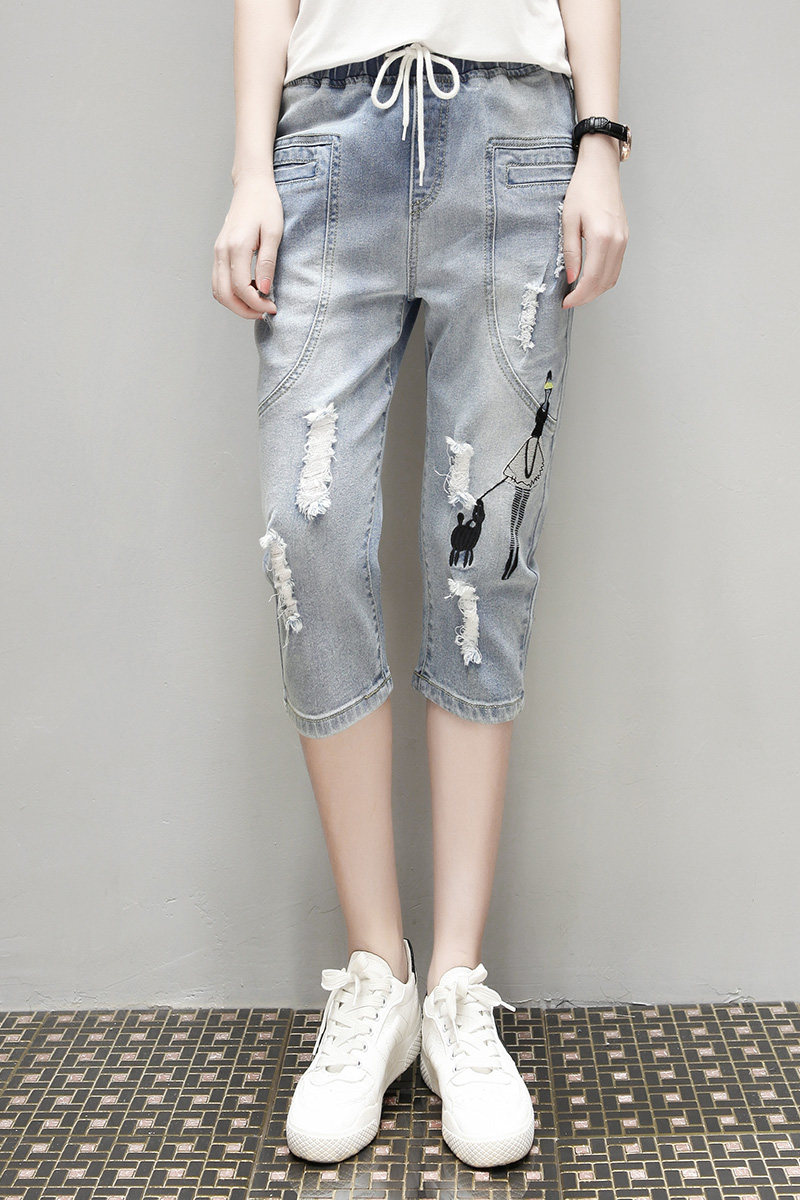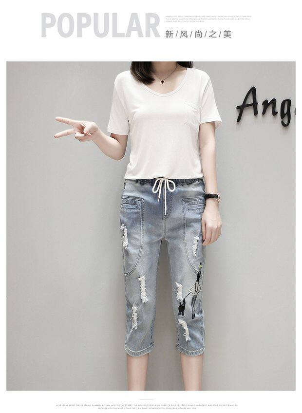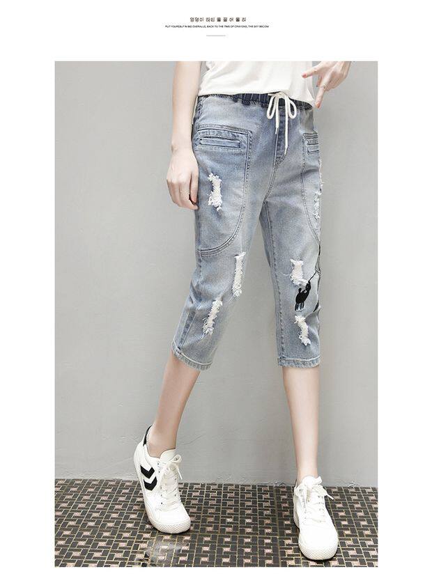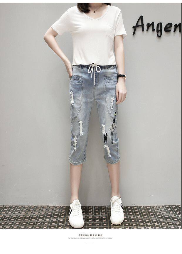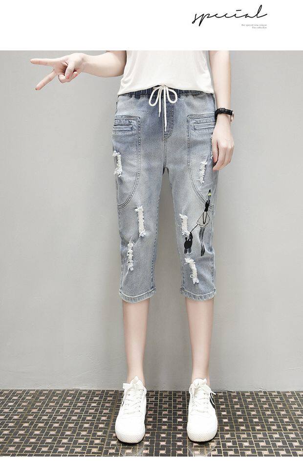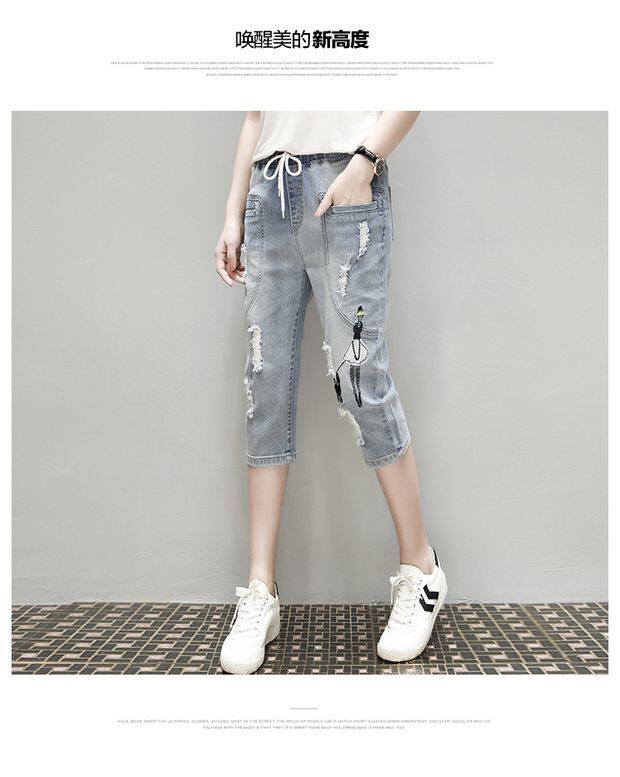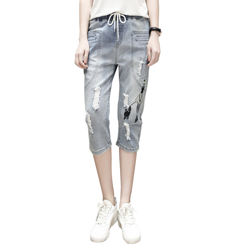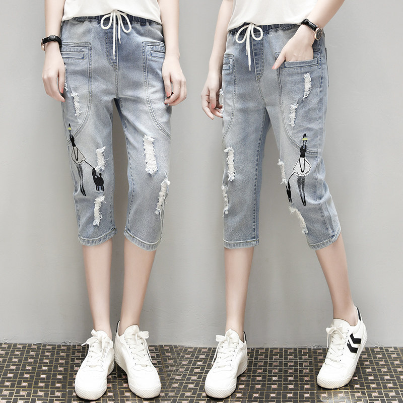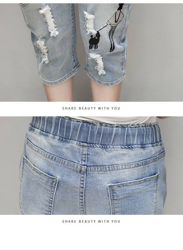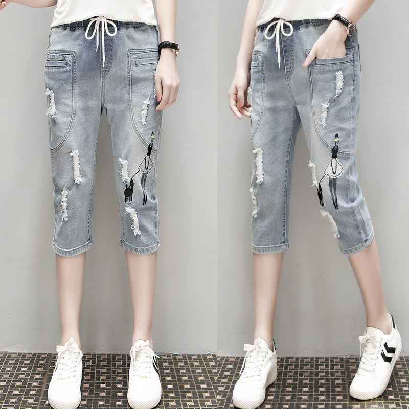 Летние джинсовые штаны, большой размер, подходит для полных девушек, свободный крой, эластичная талия