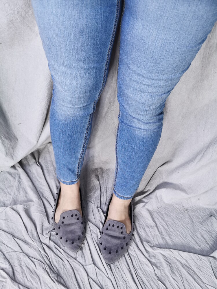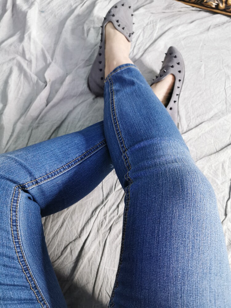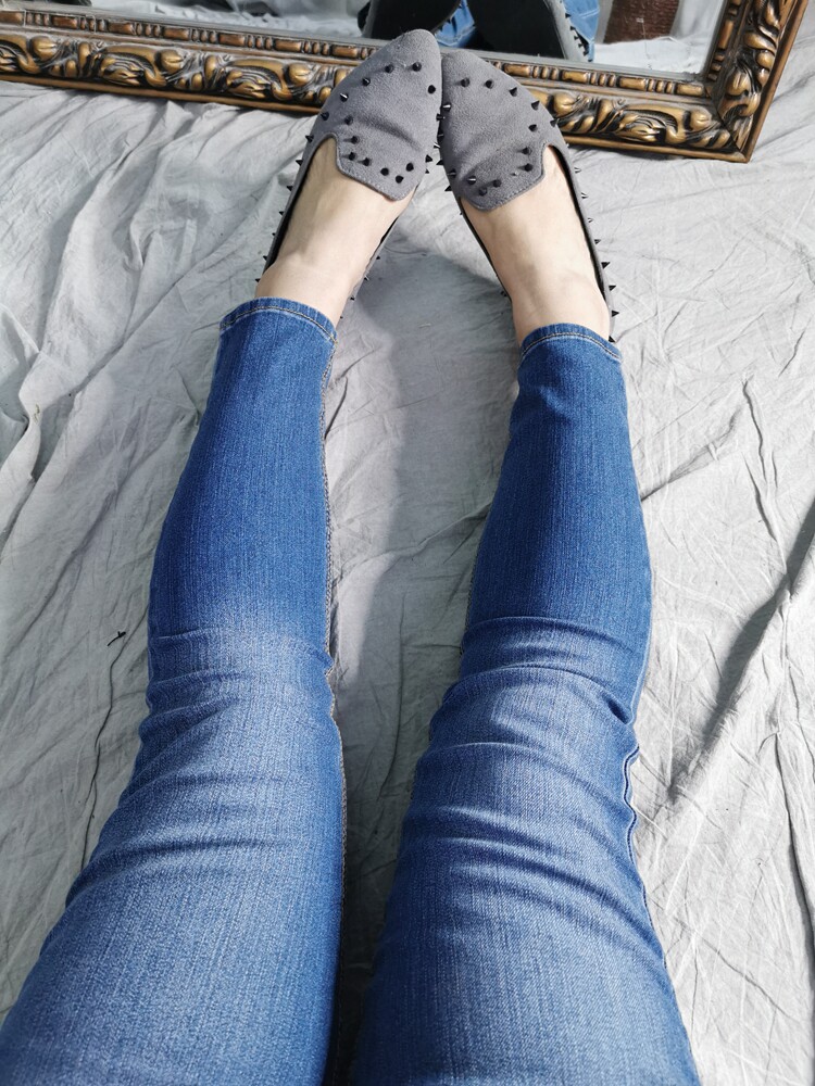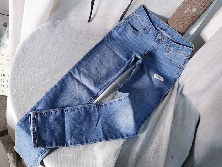- Youpin старый светло-голубой тонкий девять точечной желтой линейные брюки длинные t