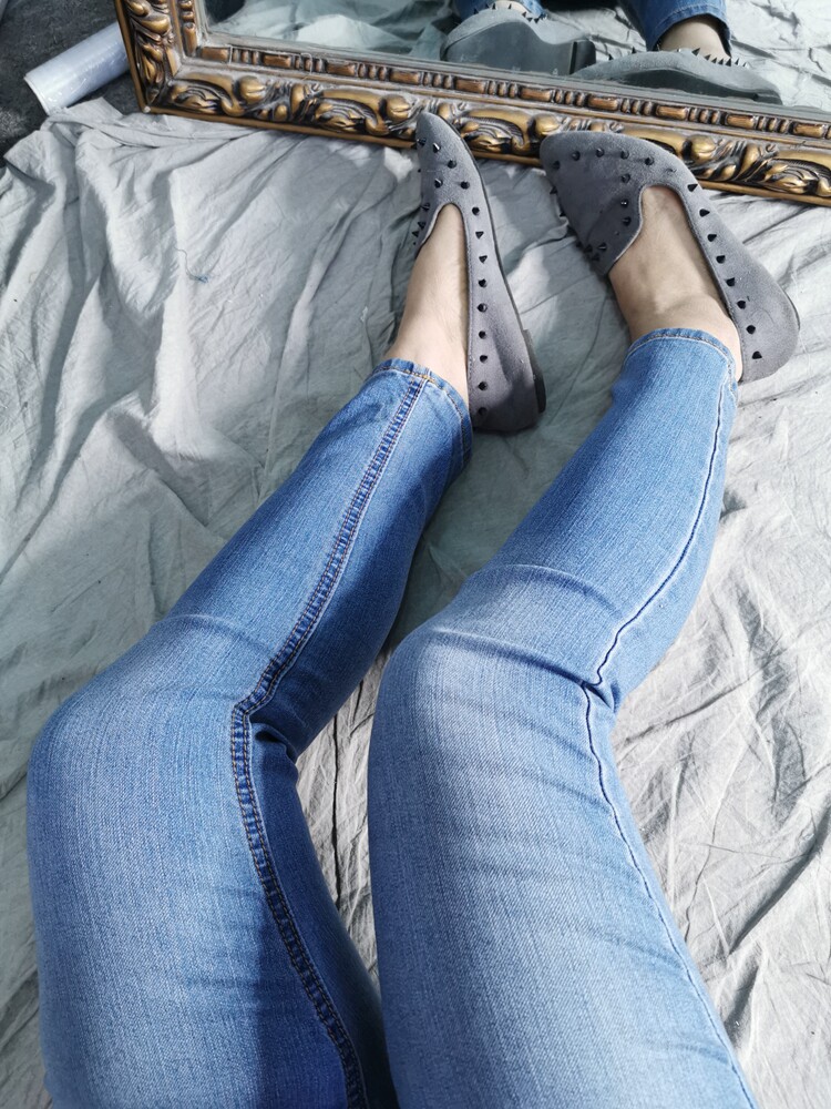 - Youpin старый светло-голубой тонкий девять точечной желтые брюки Long l