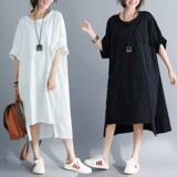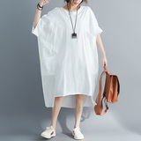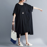 Летняя одежда, платье, большой размер, подходит для полных девушек, в корейском стиле, из хлопка и льна, в западном стиле