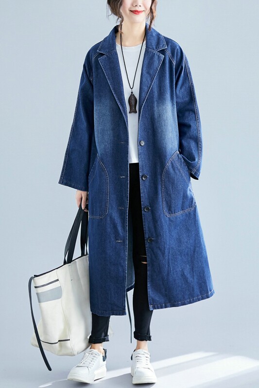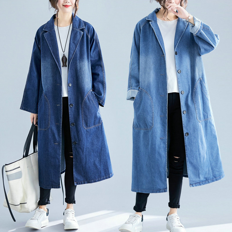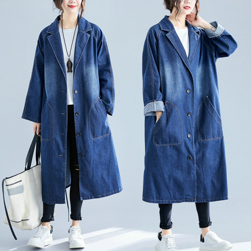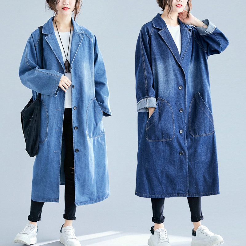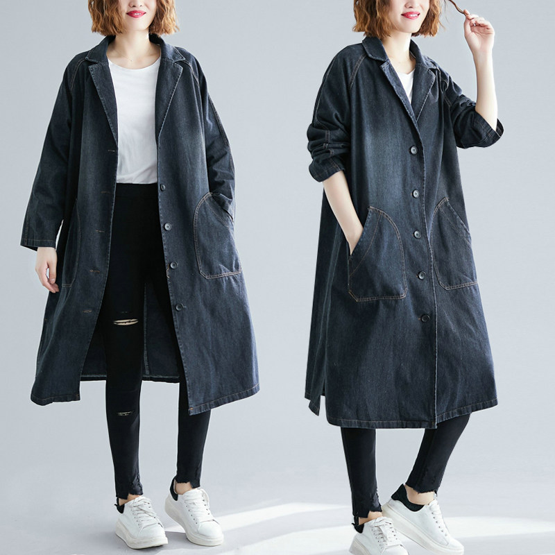 Джинсовый демисезонный осенний плащ, подходит для полных девушек, свободный крой, в западном стиле