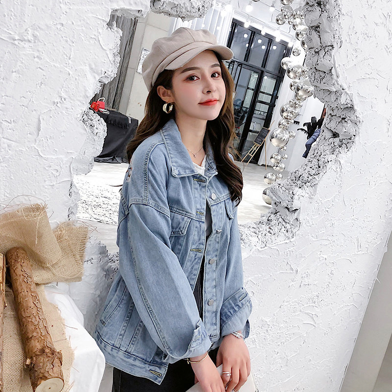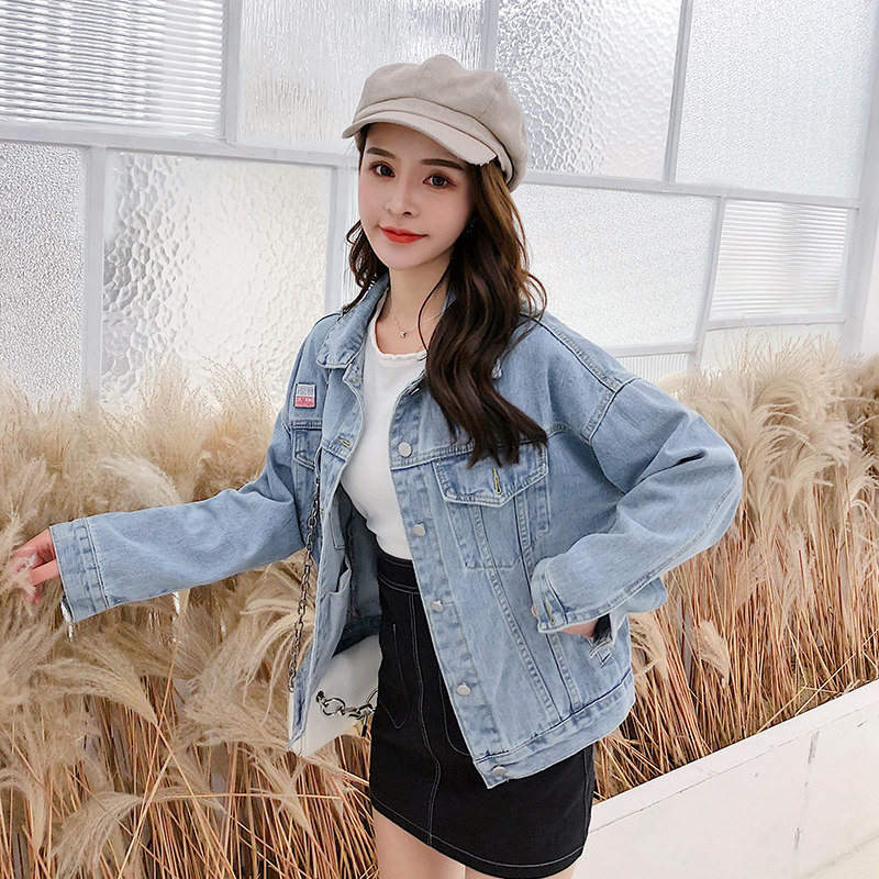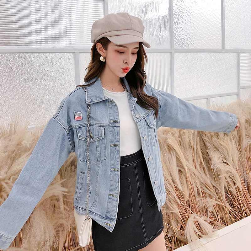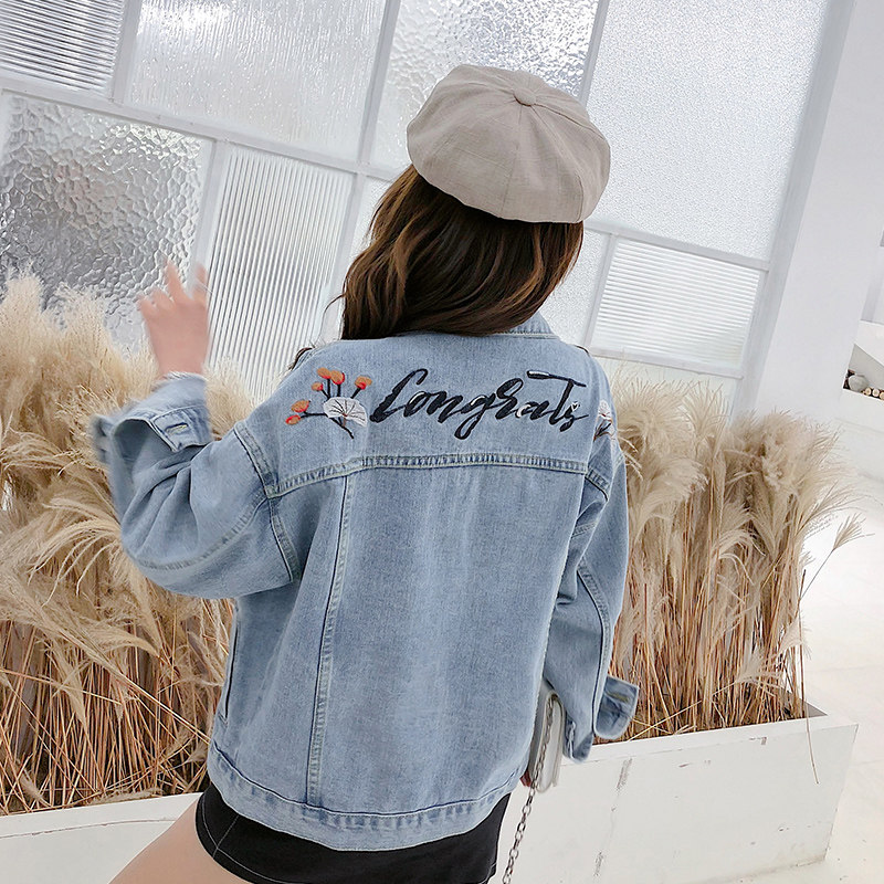 Осенняя джинсовая куртка, 2019, подходит для полных девушек, свободный крой, с вышивкой