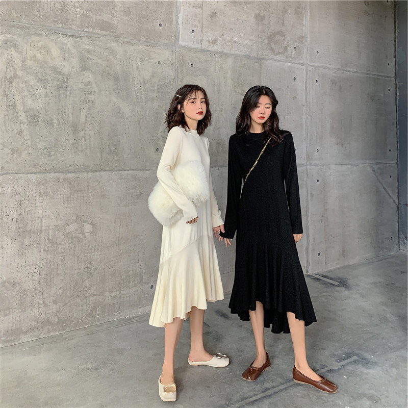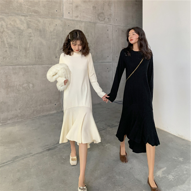 Трикотажный лонгслив, осеннее платье, ретро приталенный корсет, коллекция 2021, французский стиль
