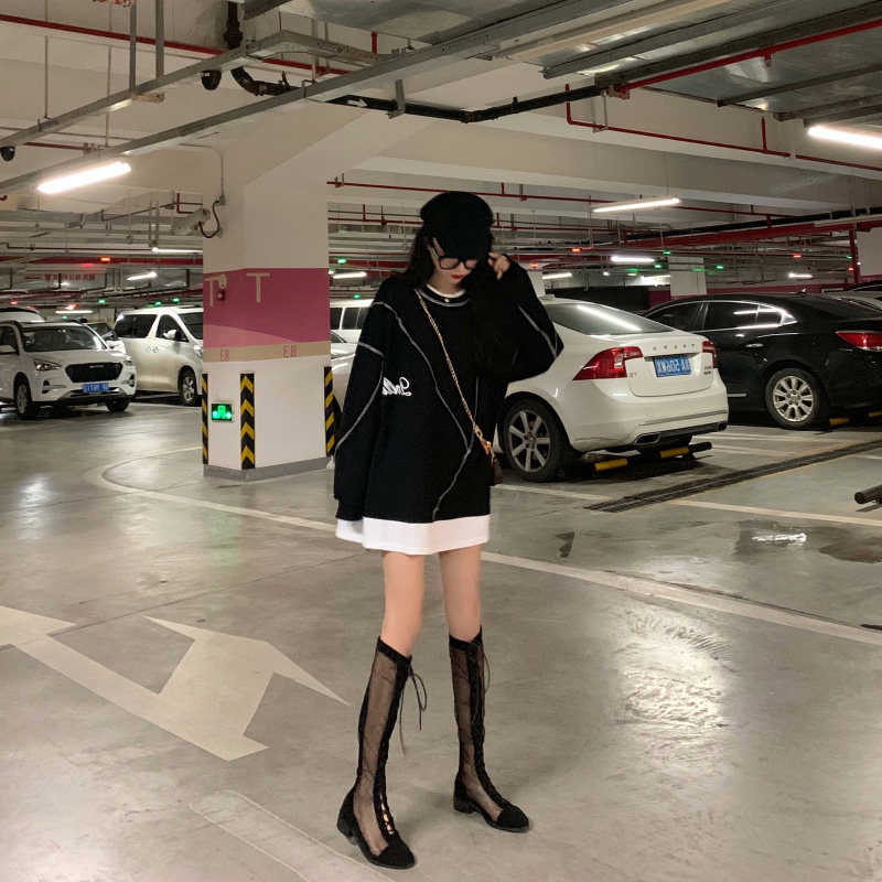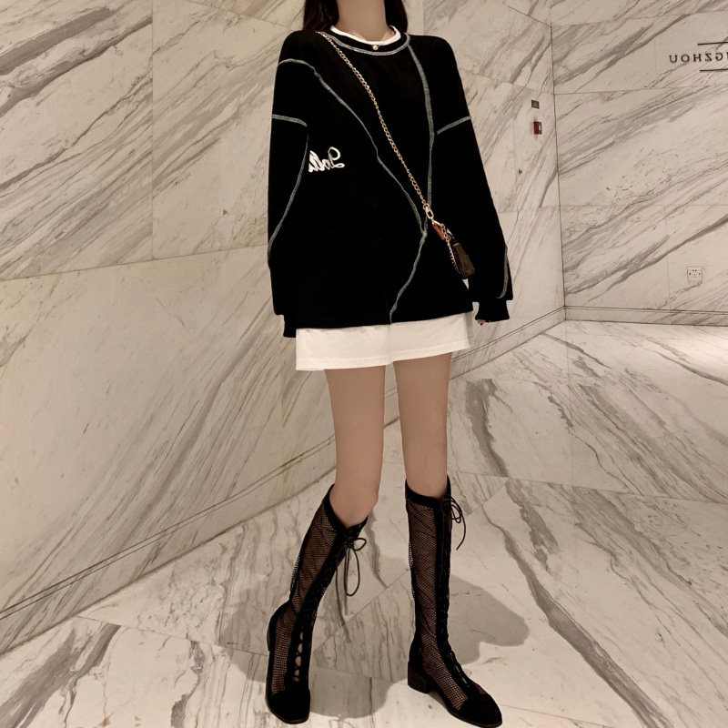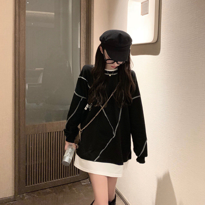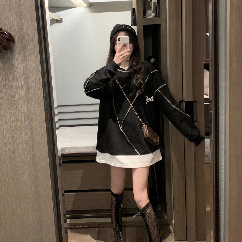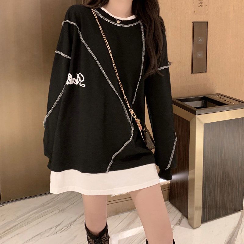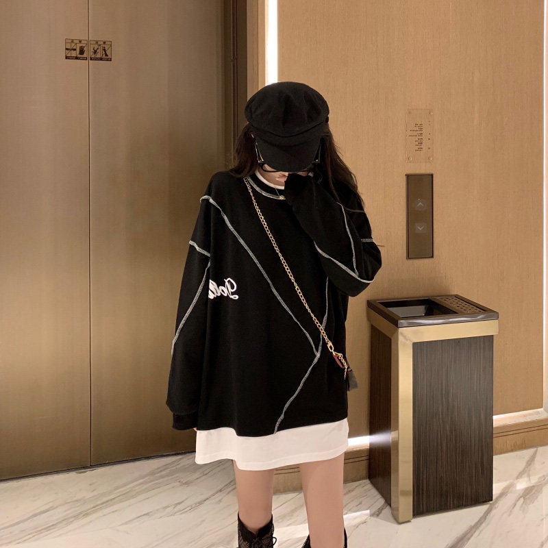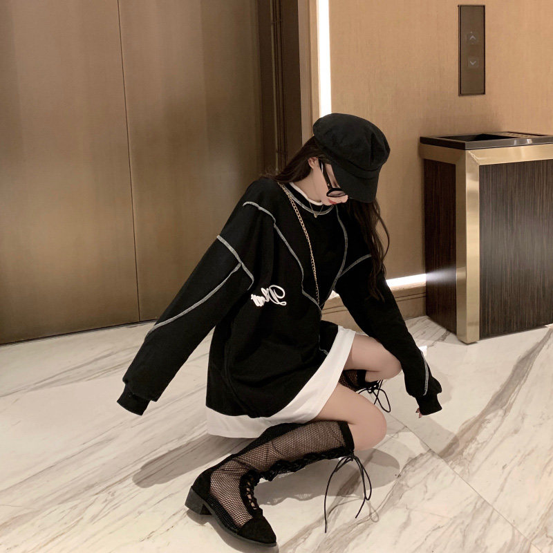 Комплект, осенняя тонкая длинная весенняя дизайнерская толстовка, средней длины, коллекция 2022, тренд сезона