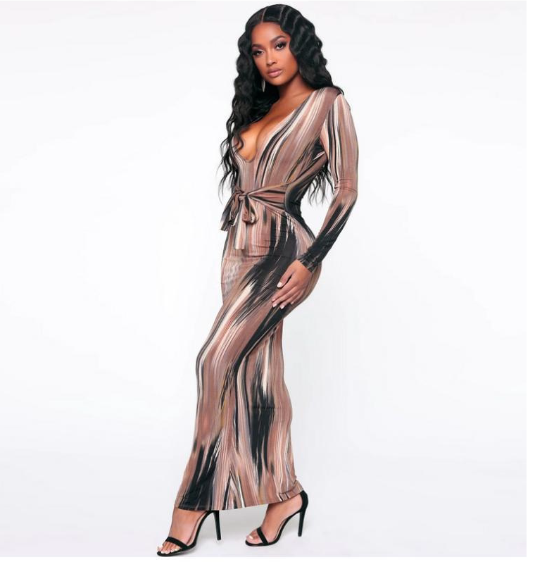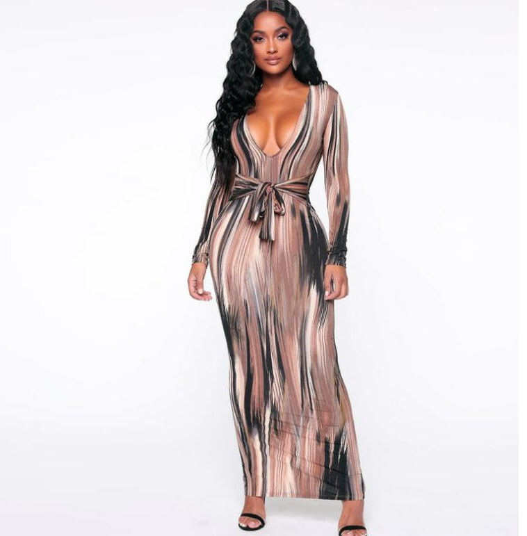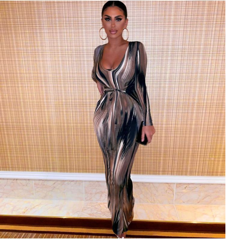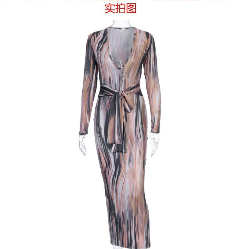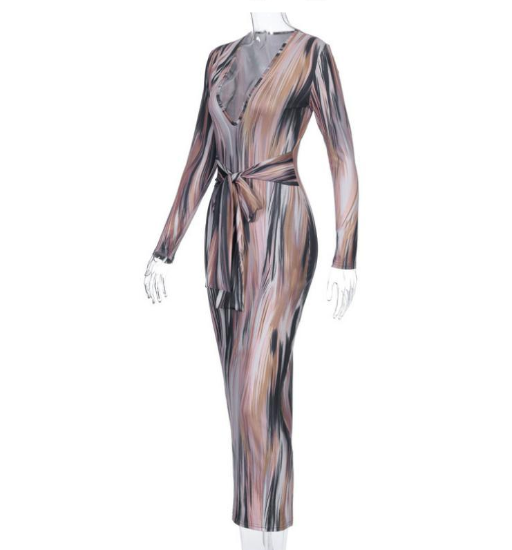 Женское спечаток с длинным рукавом платье с вареньем с длинными рукавами