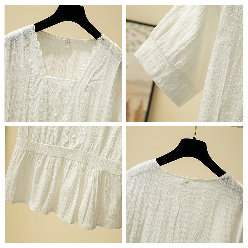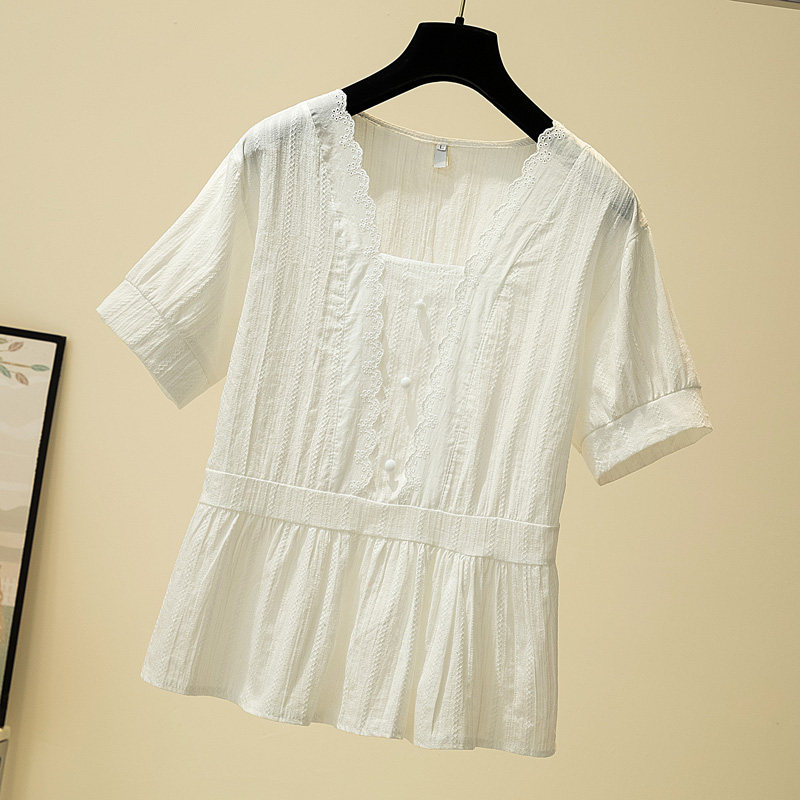 Летняя небольшая дизайнерская рубашка, большой размер, тренд сезона, в западном стиле, подходит для полных девушек, квадратный вырез, по фигуре