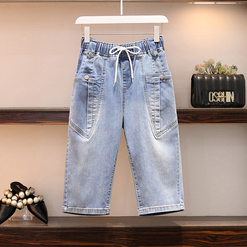 Тонкие джинсы, штаны, большой размер, высокая талия, эластичная талия