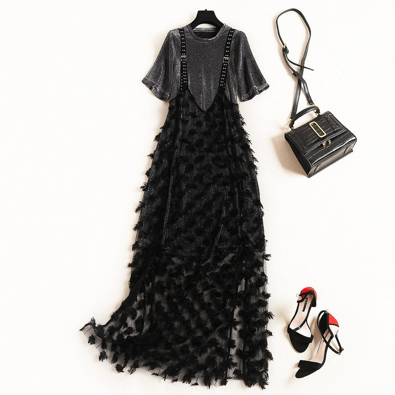 Летнее модное платье, комплект, большой размер, в западном стиле, изысканный стиль, свободный крой, по фигуре