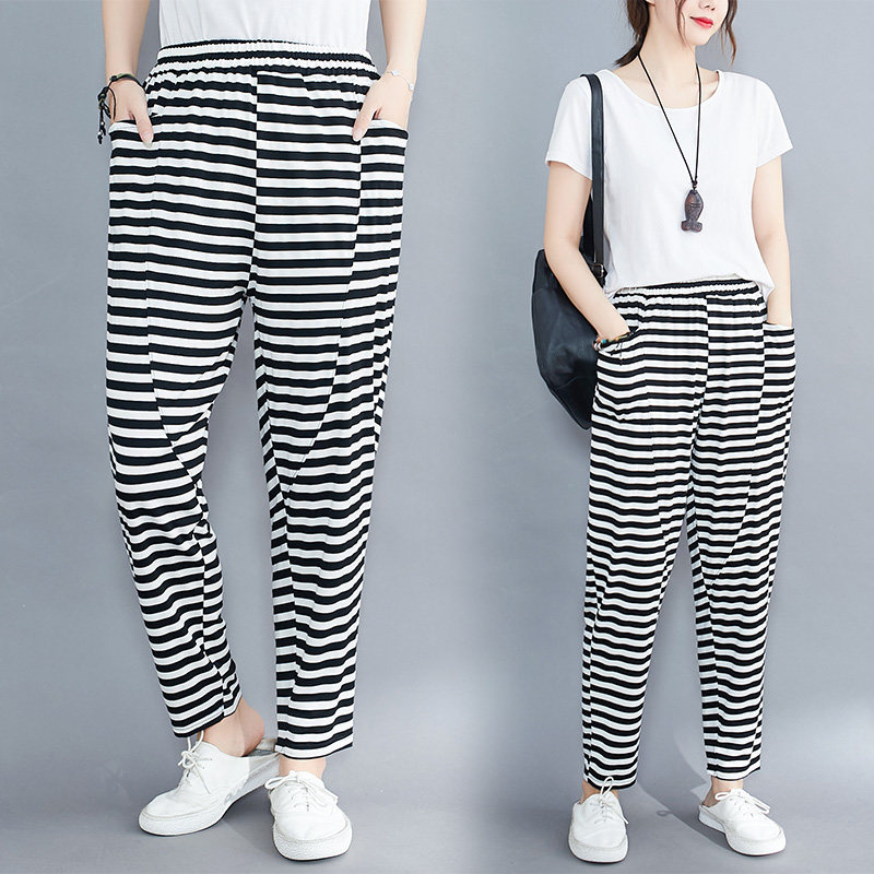 Штаны, летняя одежда, большой размер, оверсайз, эластичная талия