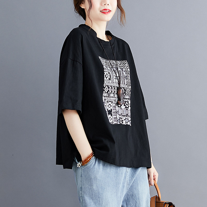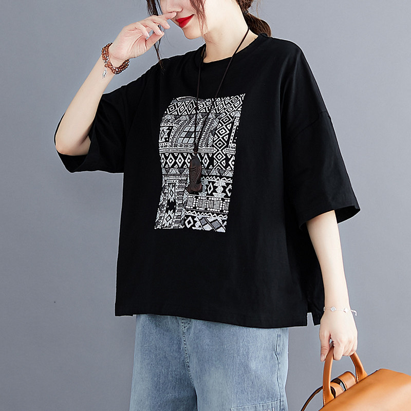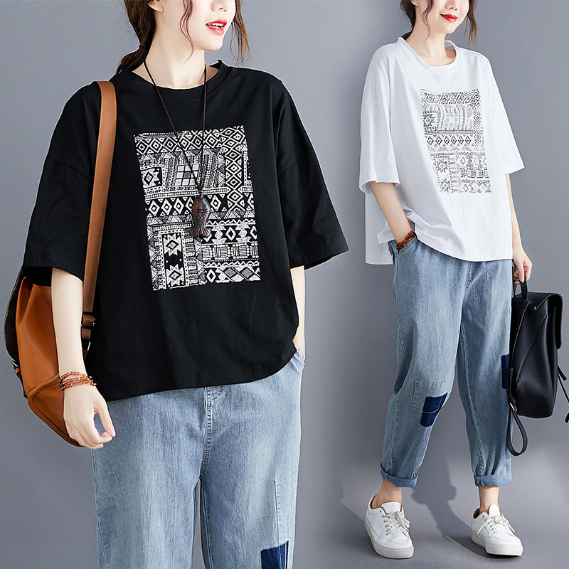 Летняя одежда для отдыха, футболка с круглым воротником, подходит для полных девушек, в западном стиле, оверсайз, большой размер