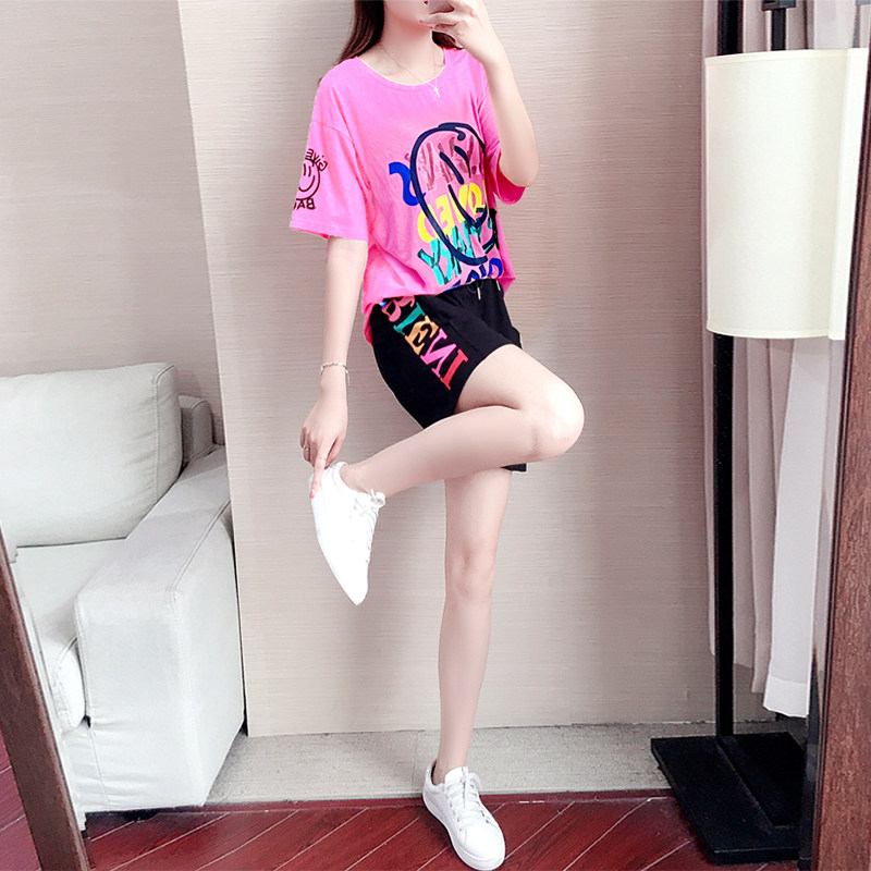 Спортивный тонкий спортивный костюм, шорты, комплект для отдыха, 2020 года, короткий рукав, подходит для полных девушек