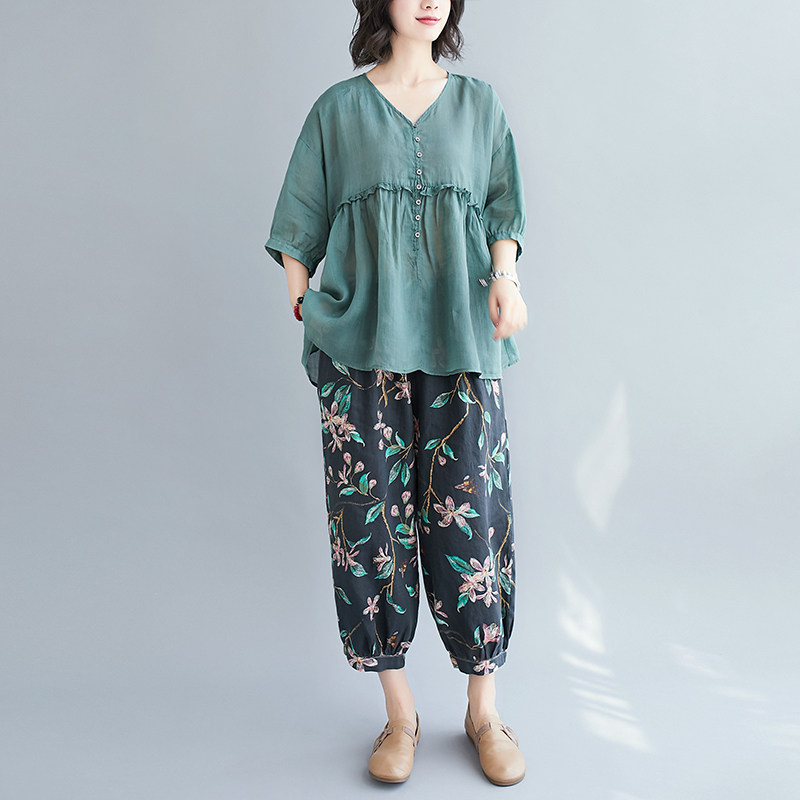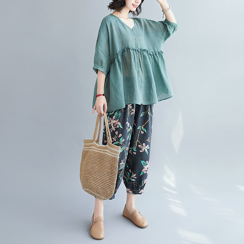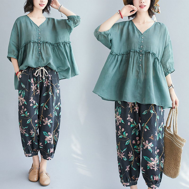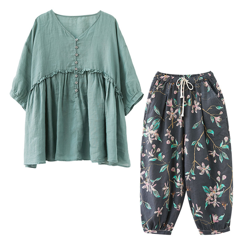 Комплект для отдыха, в западном стиле, из хлопка и льна, оверсайз, большой размер