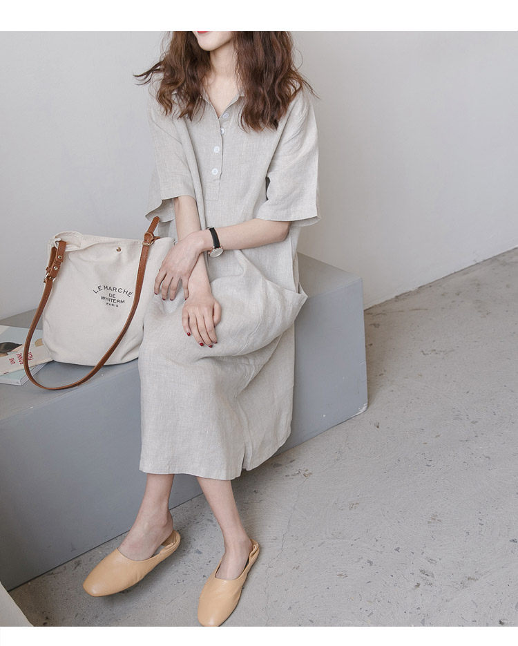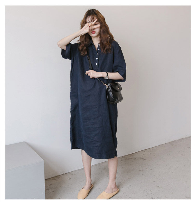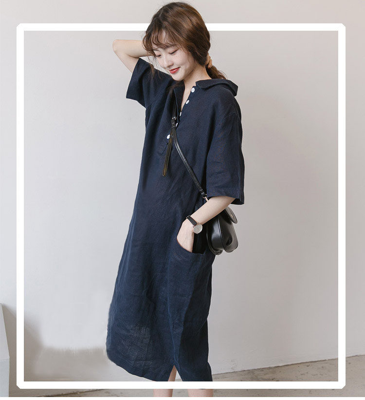 Лето 2026, повседневная льняная хлопковая свободная юбка большого размера с открытым животом и литературной рукавом четверть, летняя юбка с разрезом