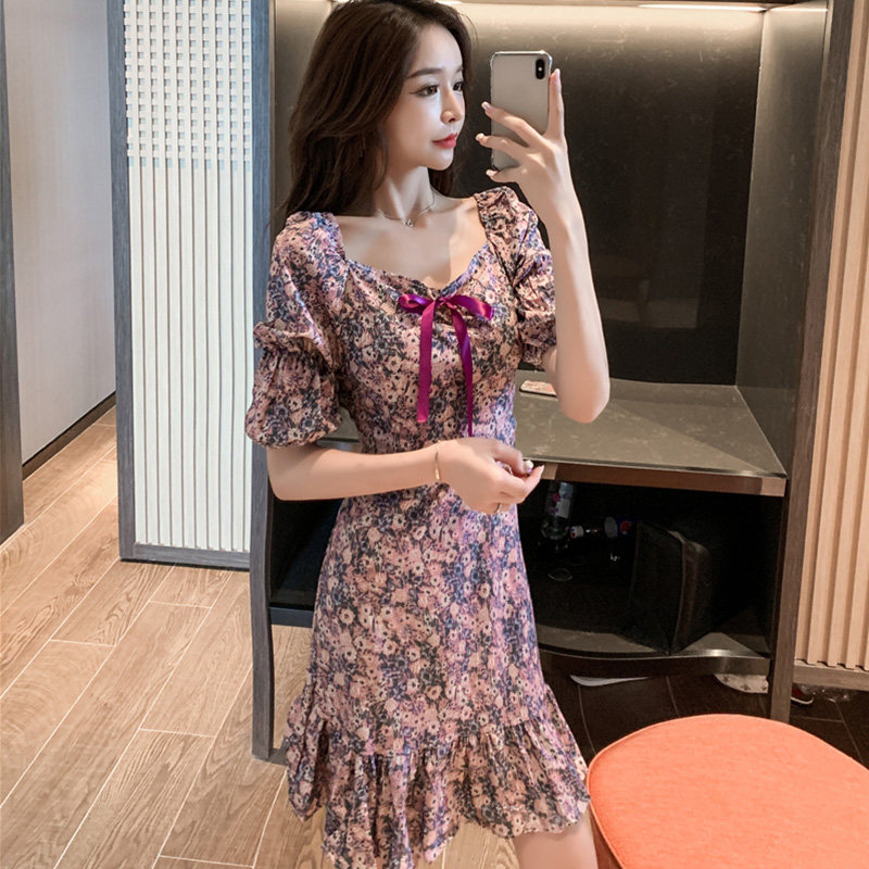 Летний приталенный корсет, длинное шифоновое платье, 2020, в корейском стиле, популярно в интернете, средней длины