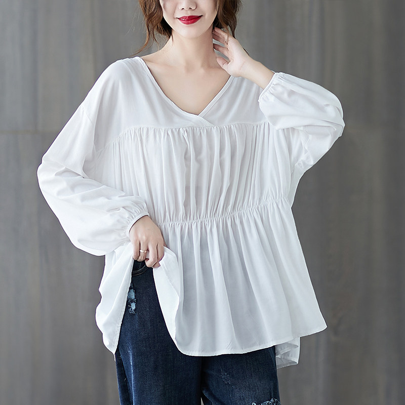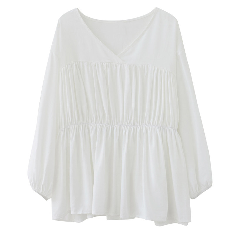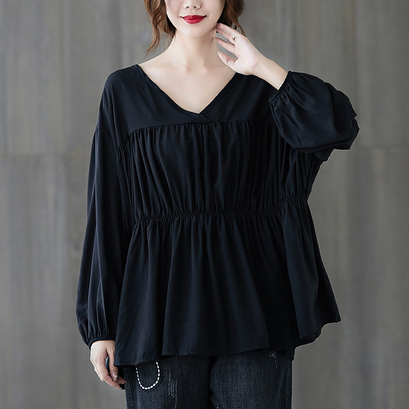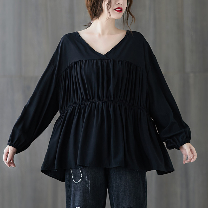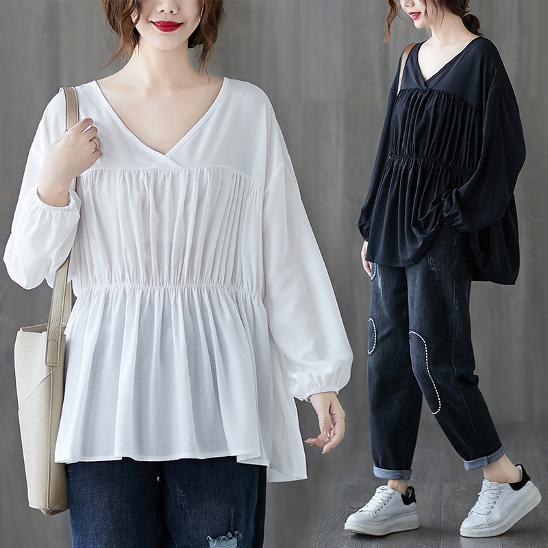 Осенняя рубашка, лонгслив, подходит для полных девушек, V-образный вырез, оверсайз, большой размер, по фигуре