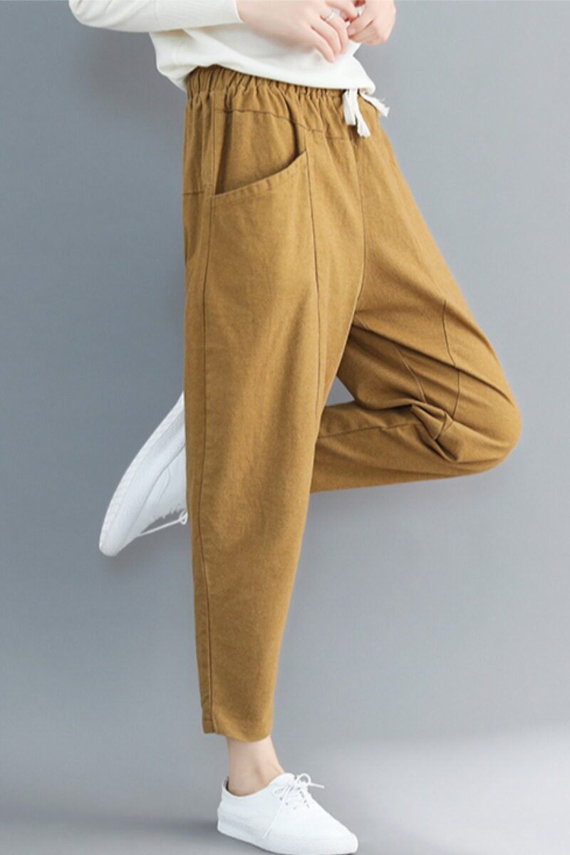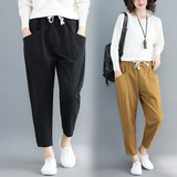 Осенние приталенные штаны, большой размер, эластичная талия, на шнурках
