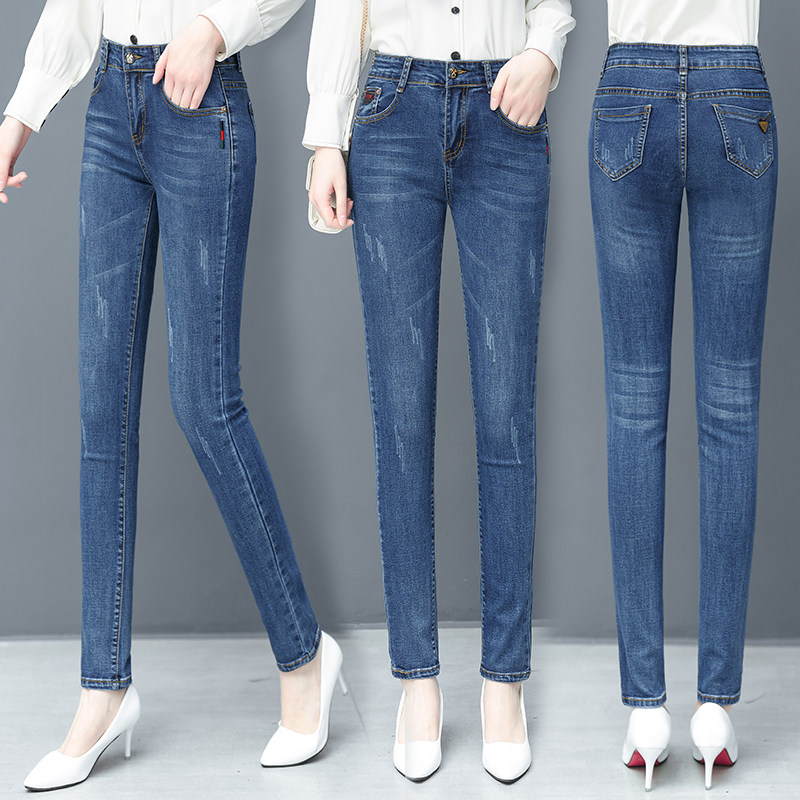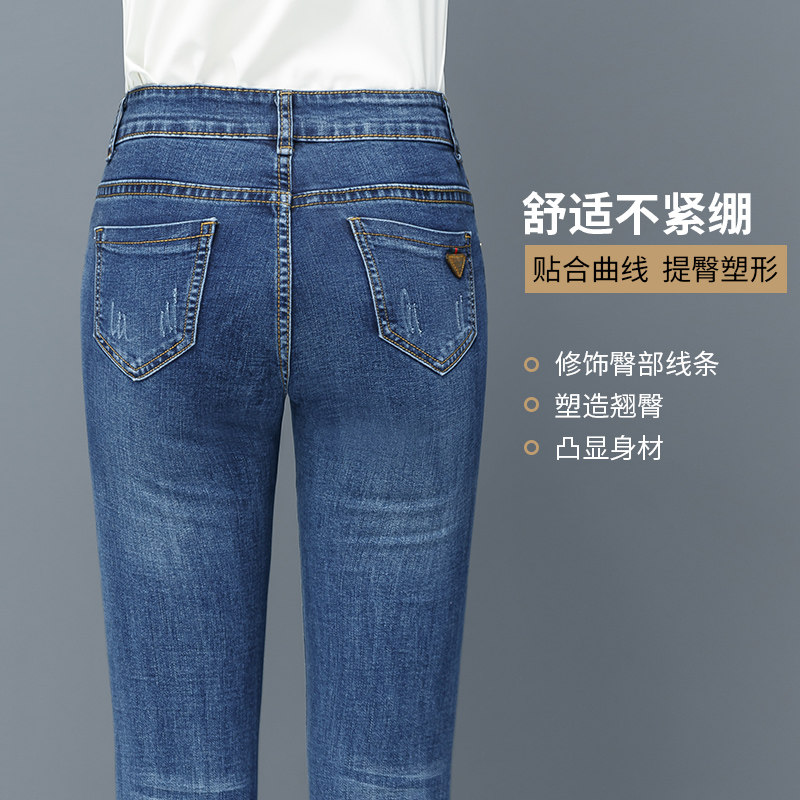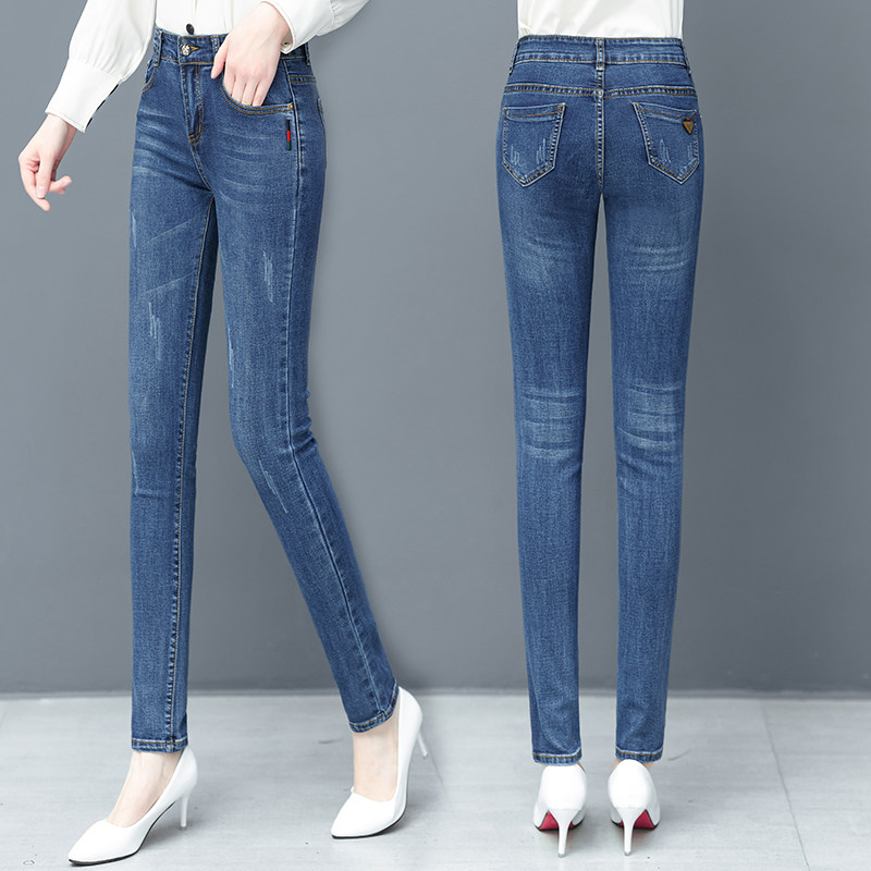 Джинсы, осенние штаны, приталенный небольшой карандаш, 2021 года, высокая талия, облегающий крой