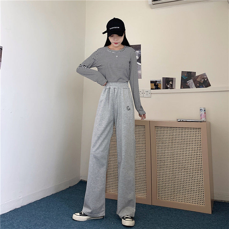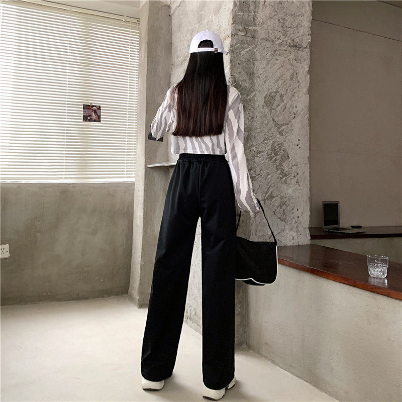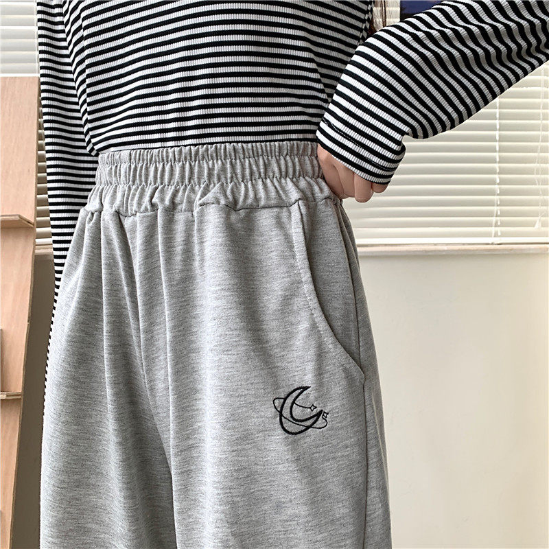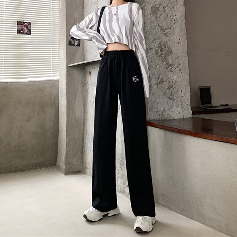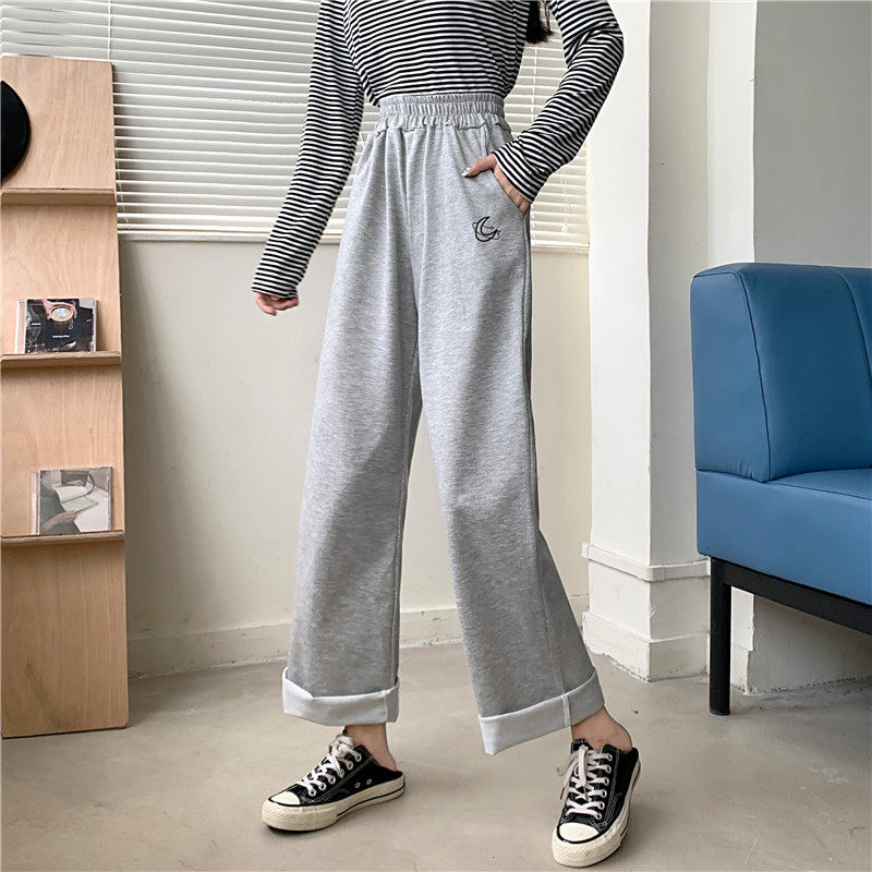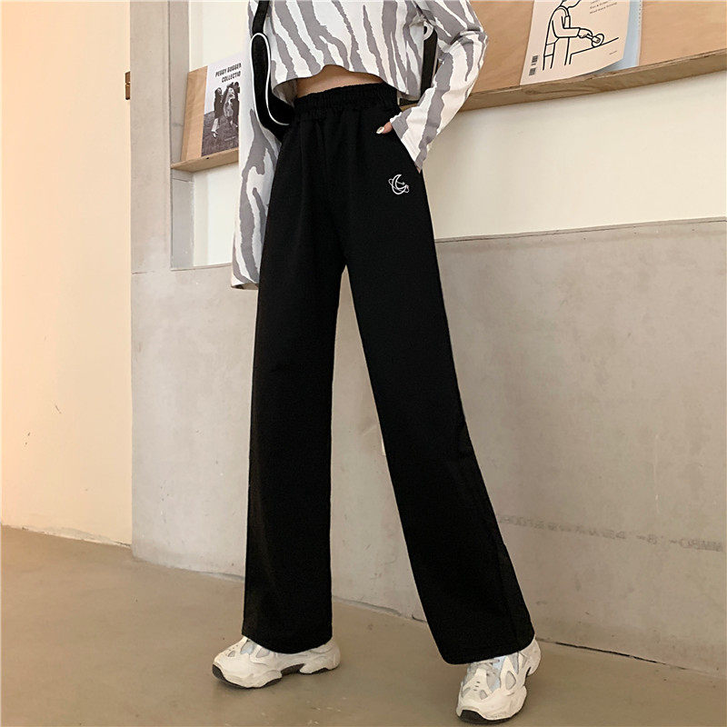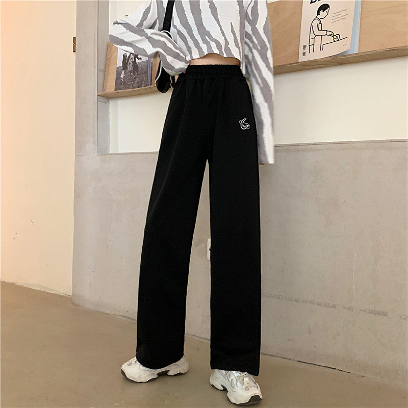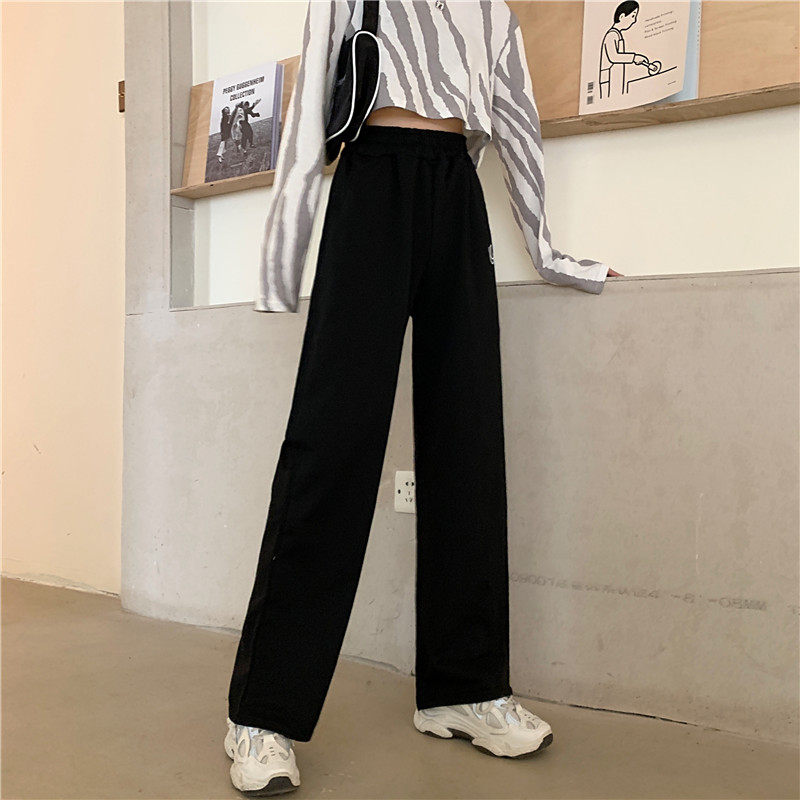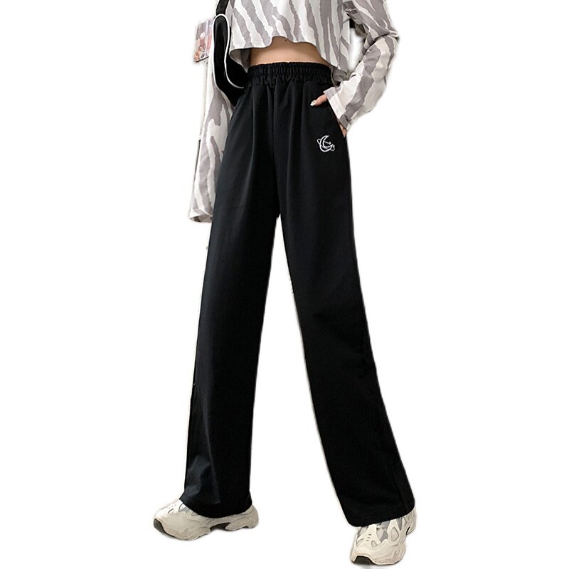 Штаны для школьников и студентов, повседневные брюки, в корейском стиле, большой размер, подходит для полных девушек, высокая талия, свободный прямой крой