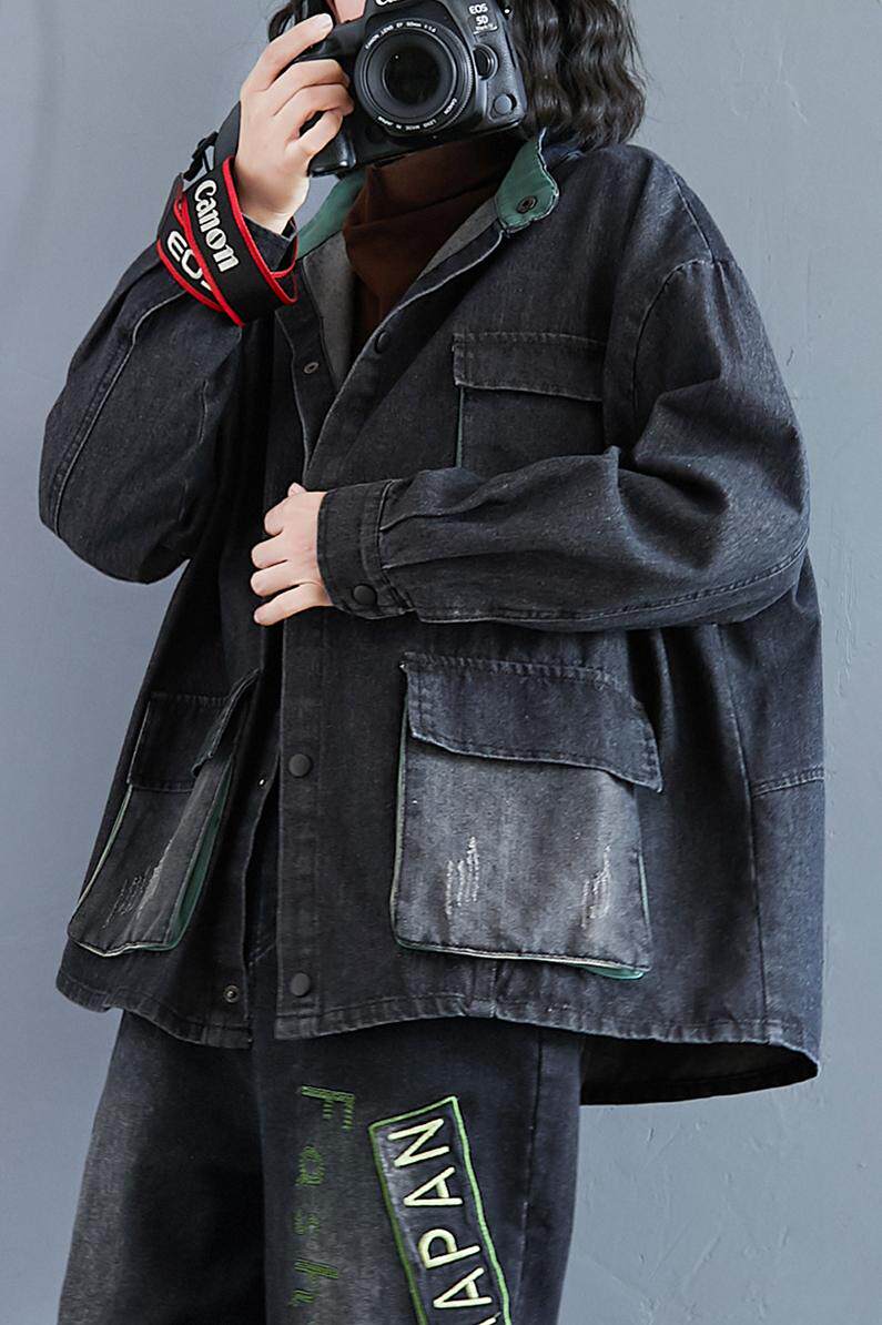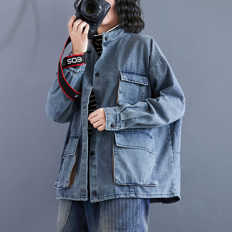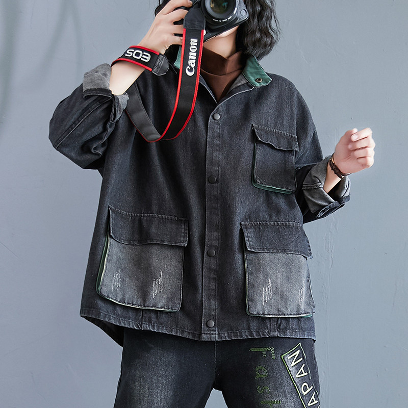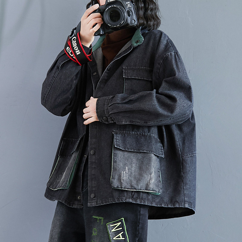 Джинсовая юбка, демисезонная куртка, большой размер, в корейском стиле, оверсайз