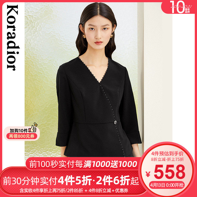 Черная тонкая рубашка, 2021 года, V-образный вырез
