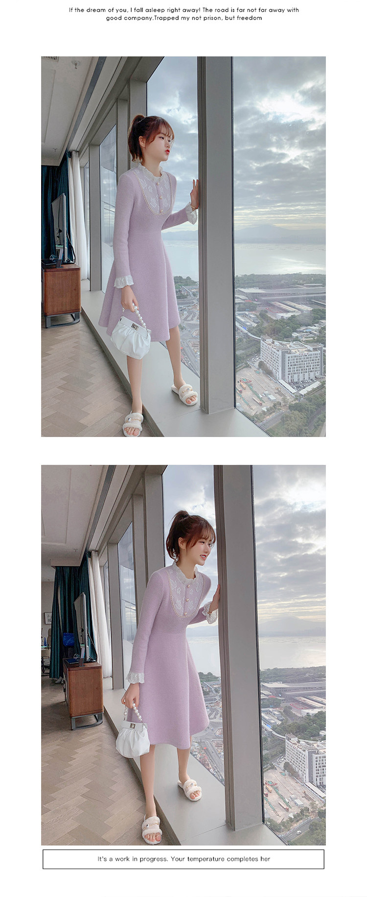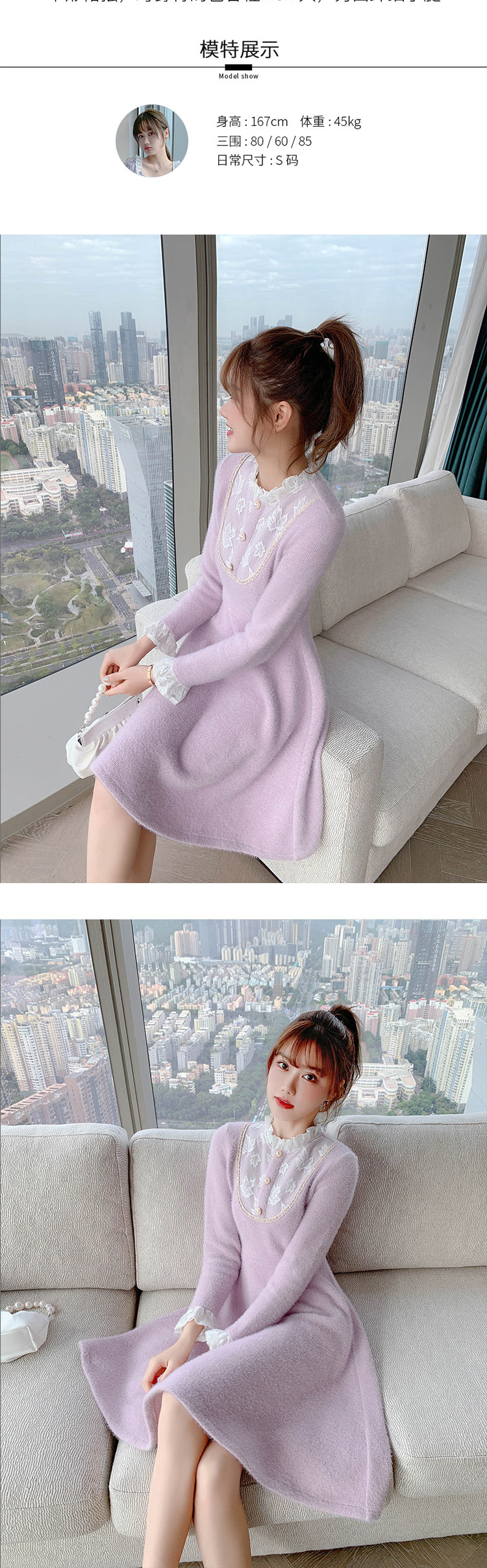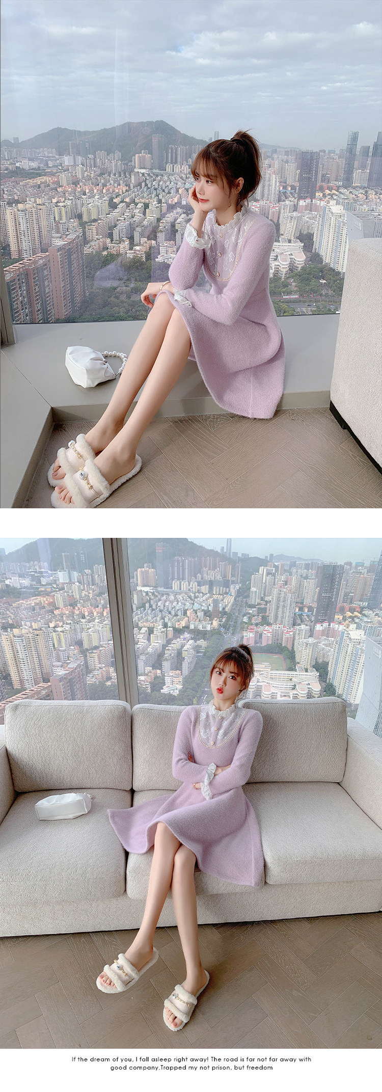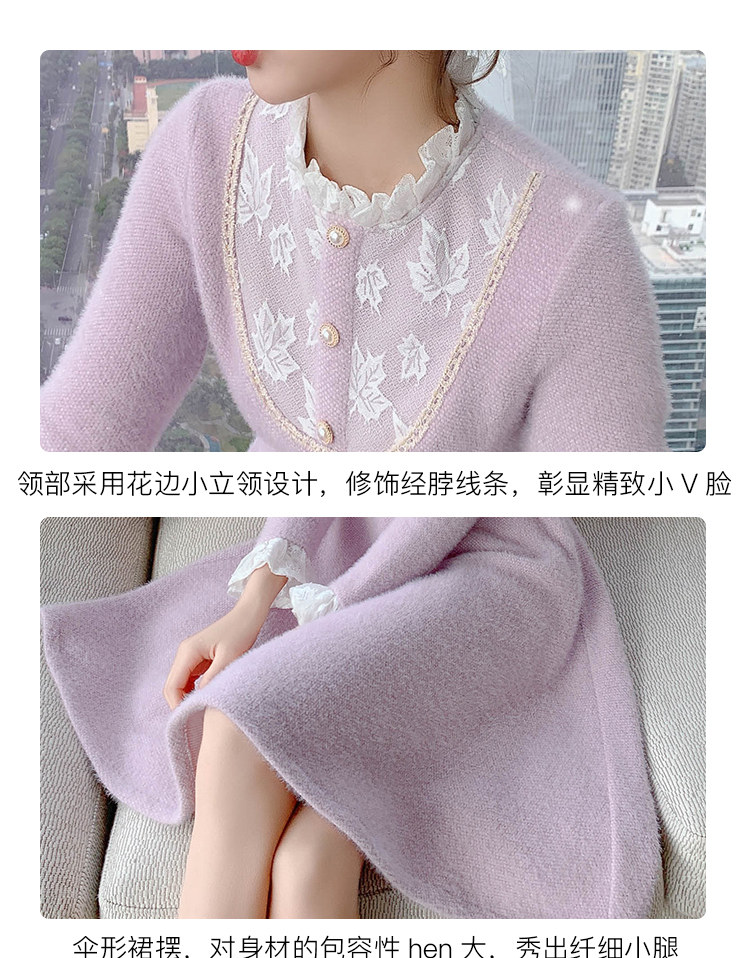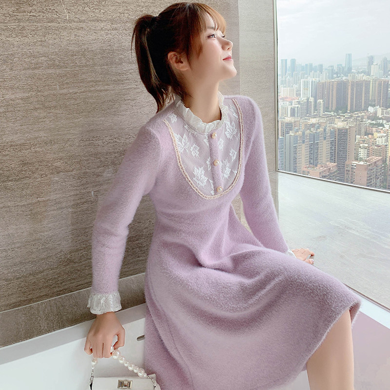Весенний осенний милый сиреневый кружевной трикотажный свитер, платье, 2021 года, подходит для подростков