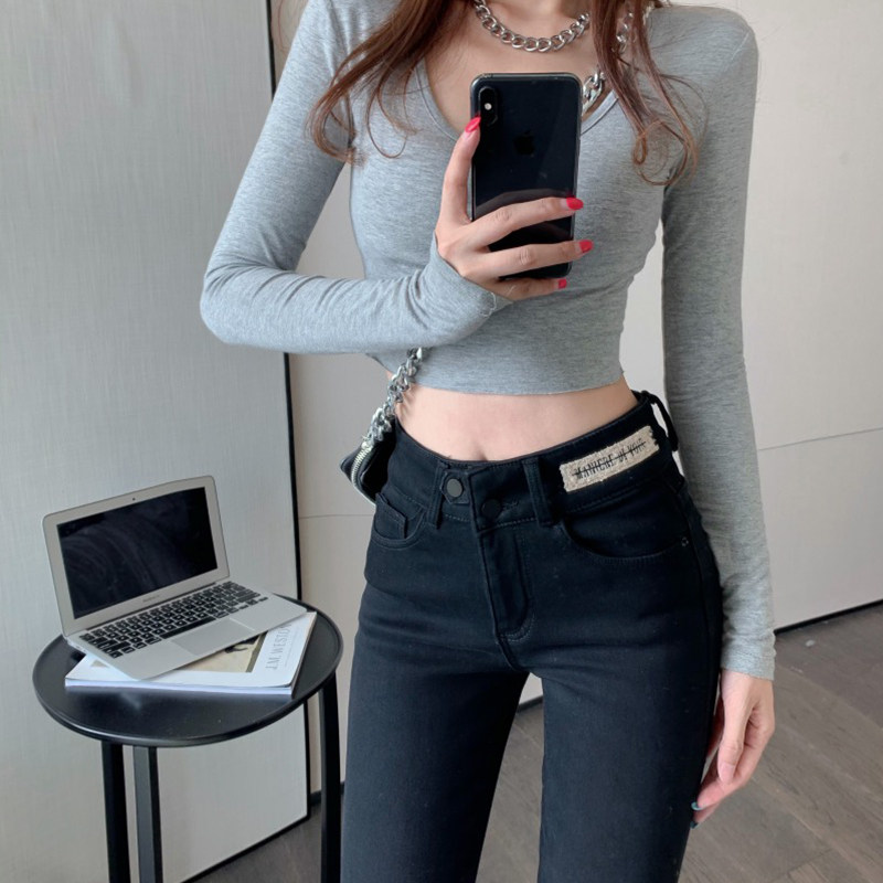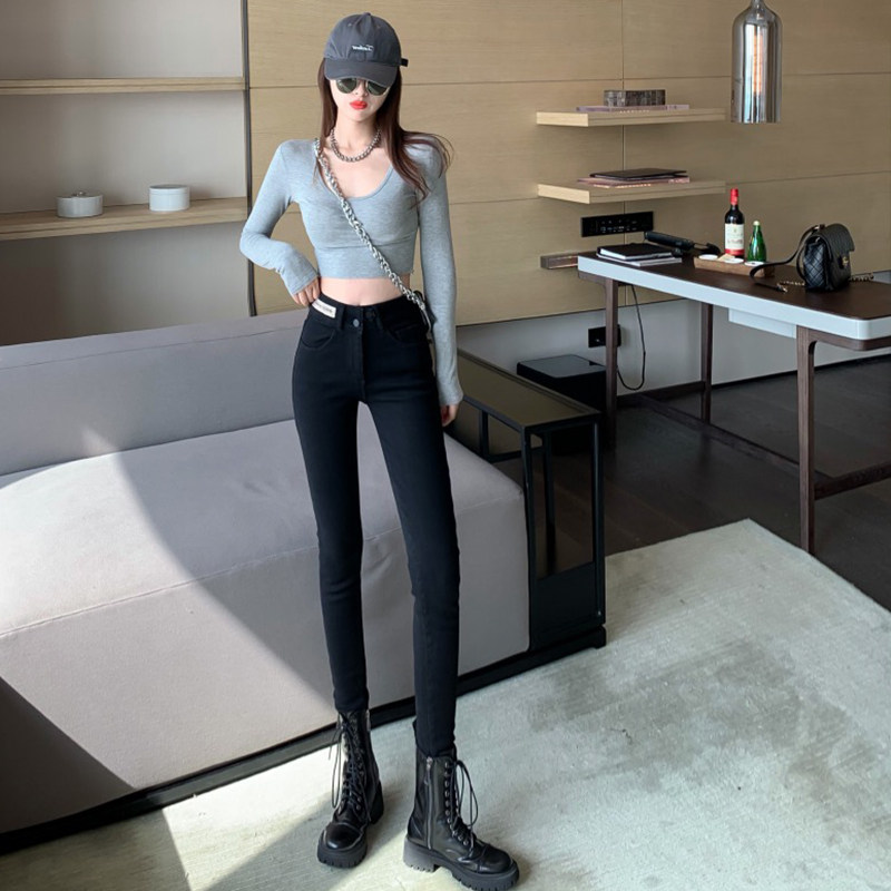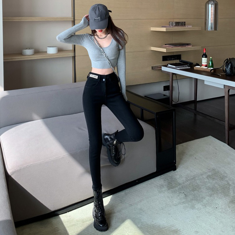 Черные джинсы, приталенные универсальные штаны, сексуальный эластичный карандаш, высокая талия, в обтяжку