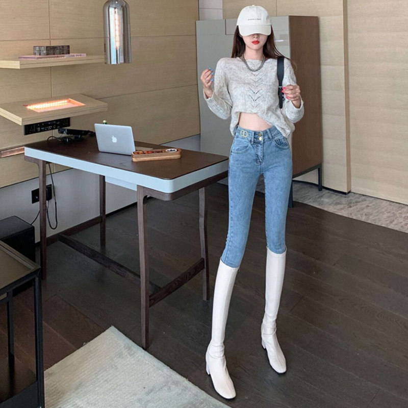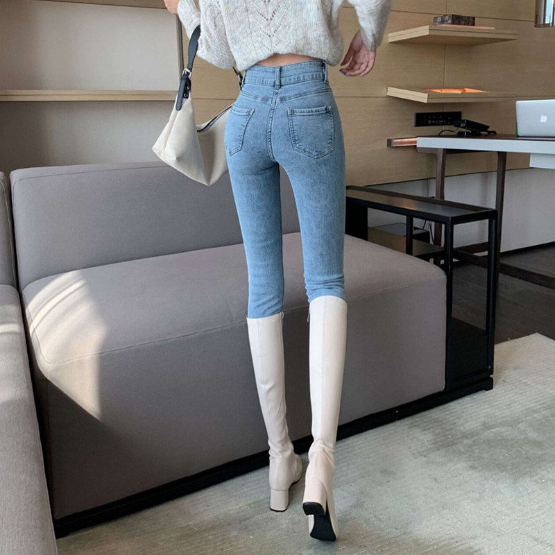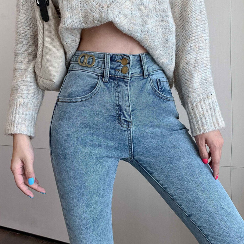 Сексуальные синие джинсы, универсальные штаны, дизайнерский карандаш, высокая талия, тренд сезона