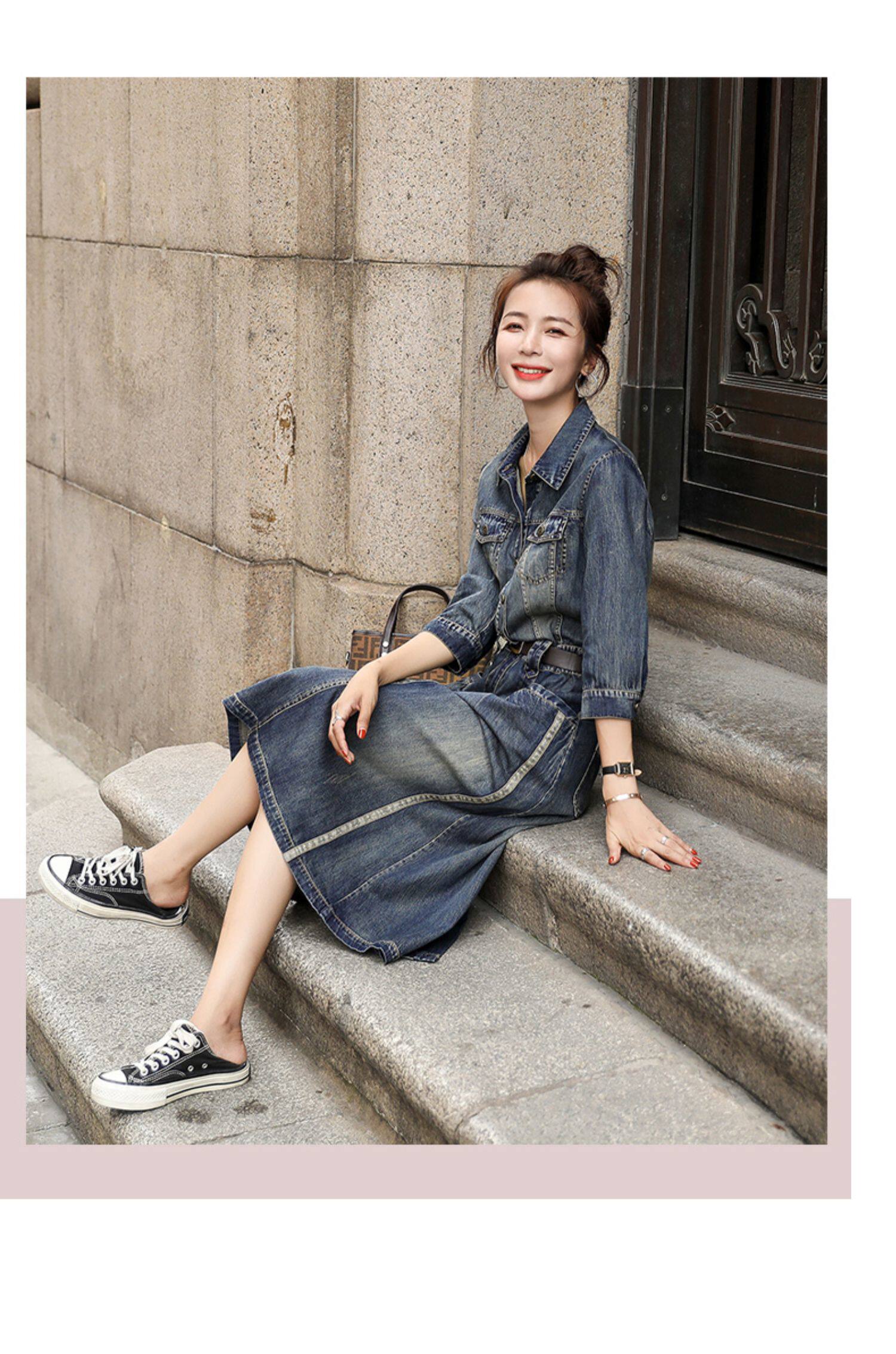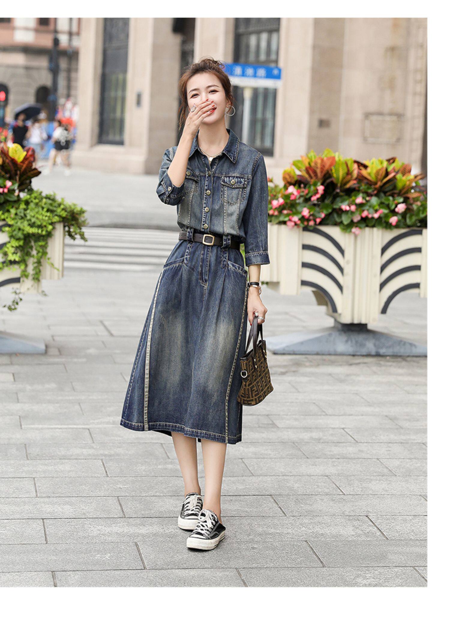 Джинсовое платье, приталенный корсет, коллекция 2021, в стиле Шанель