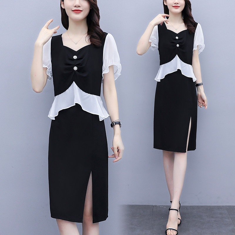 Летнее платье, комплект, подходит для полных девушек, большой размер, легкий роскошный стиль, в западном стиле