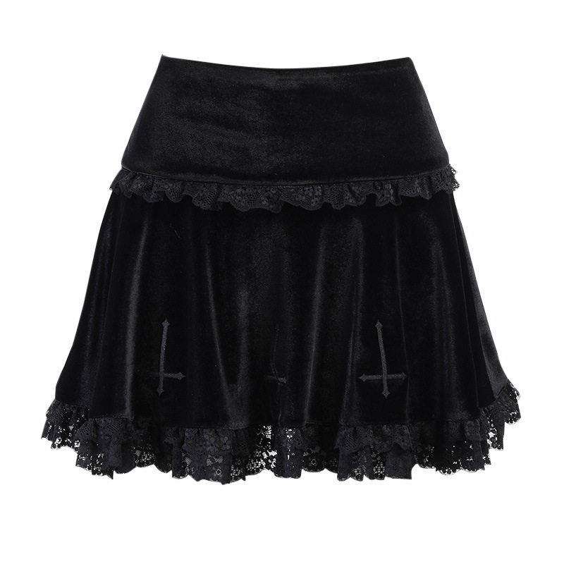 Вышитая кружевная замшевая юбка темная дизайн вышивка кружев