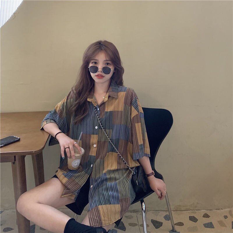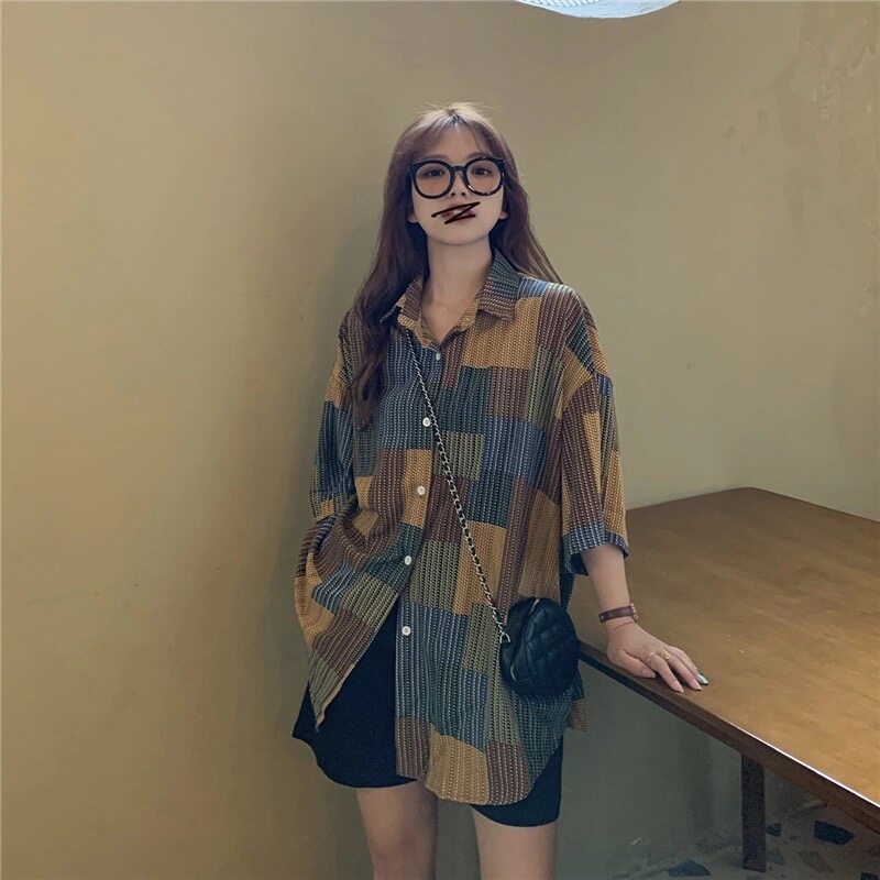 Летняя ретро дизайнерская рубашка, свободный крой, тренд сезона