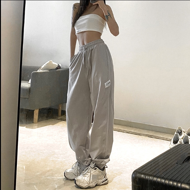 Вышитые высокие талию повседневные брюки чистый цвет высокий лимин полосы повседневные брюки женский