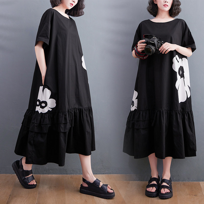 Летнее длинное платье с круглым воротником, в западном стиле, большой размер, средней длины, короткий рукав