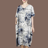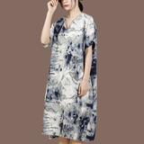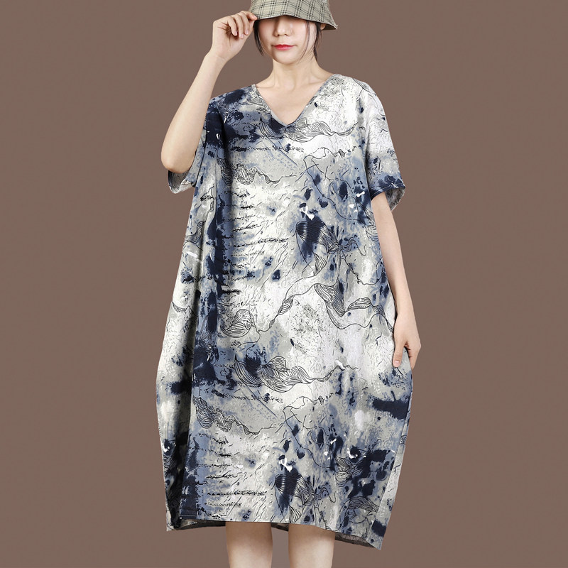 Ретро летнее длинное этническое платье, средней длины, большой размер, подходит для полных девушек, из хлопка и льна, этнический стиль