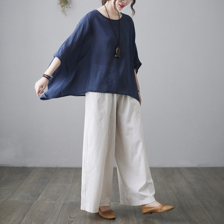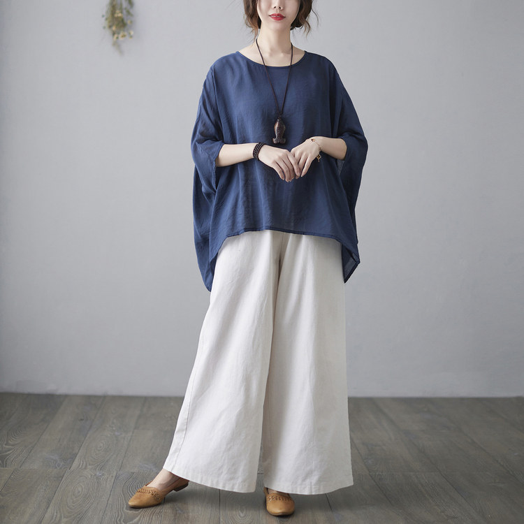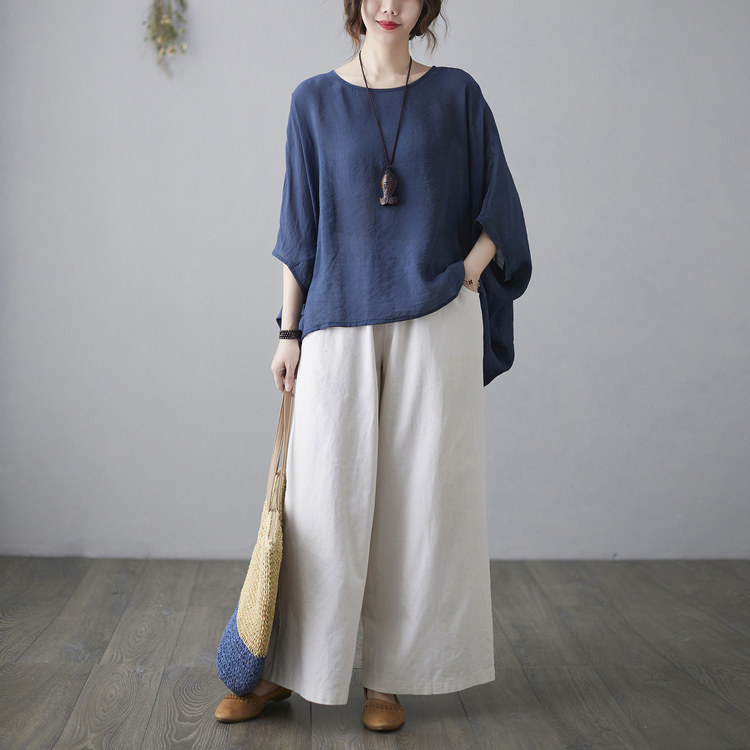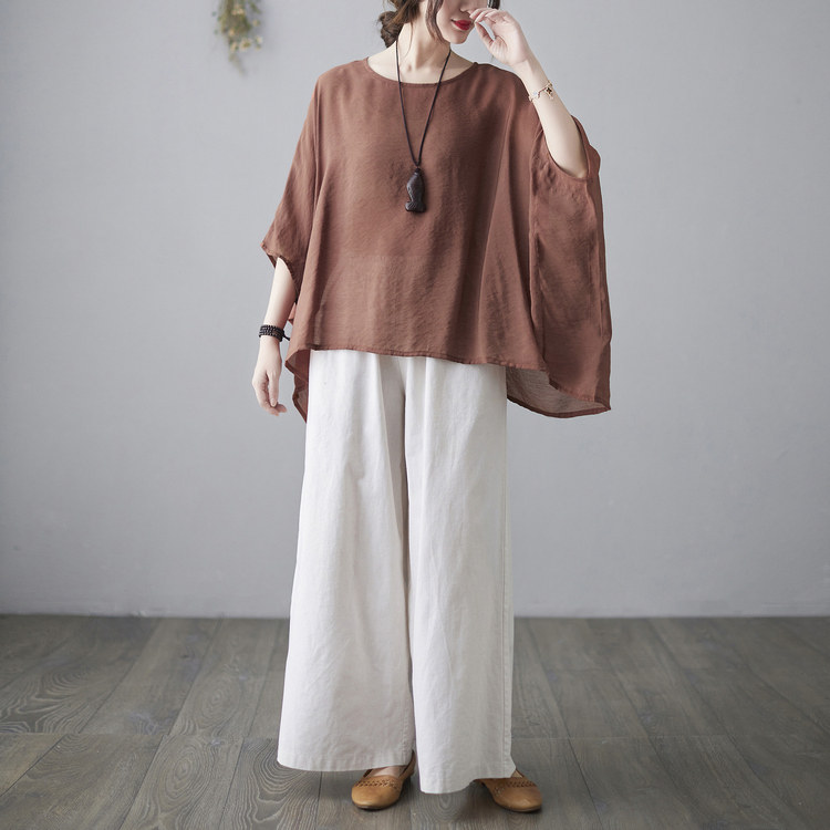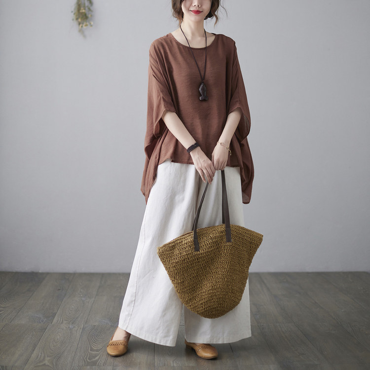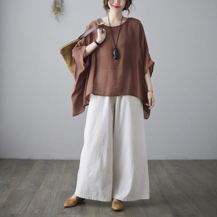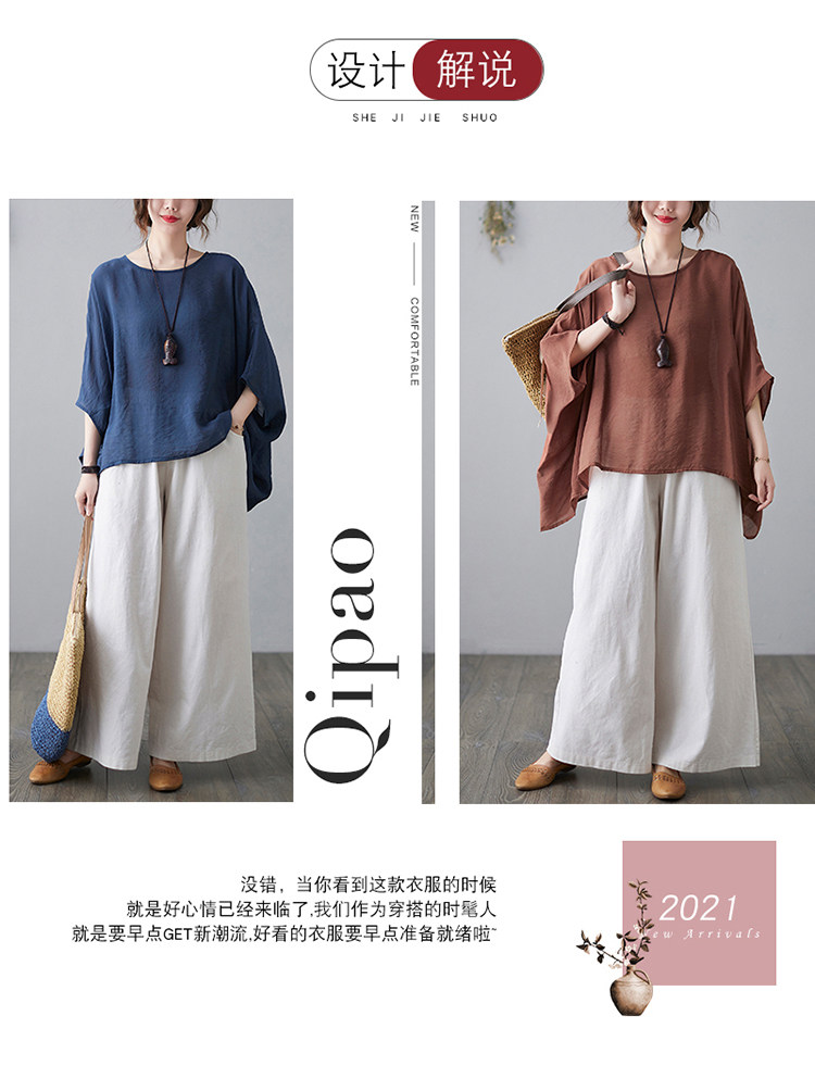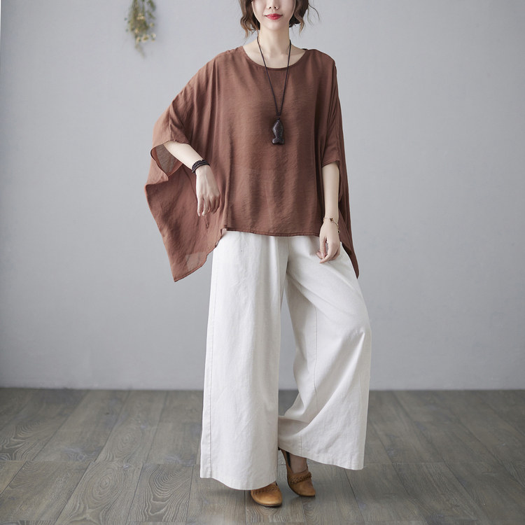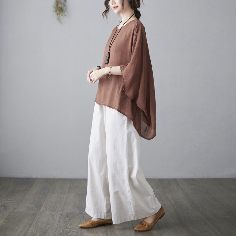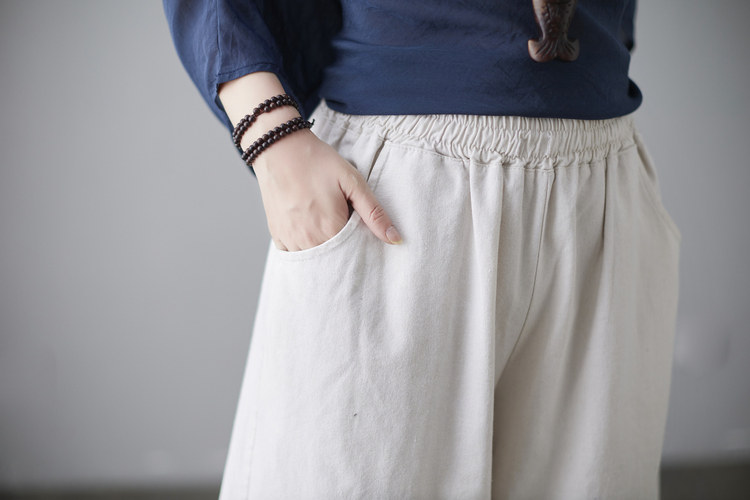 Штаны, ретро комплект, из хлопка и льна, в западном стиле, свободный крой