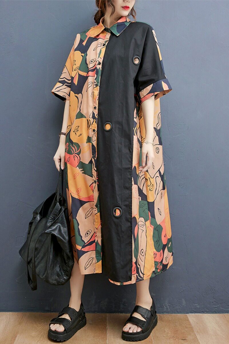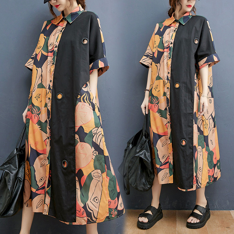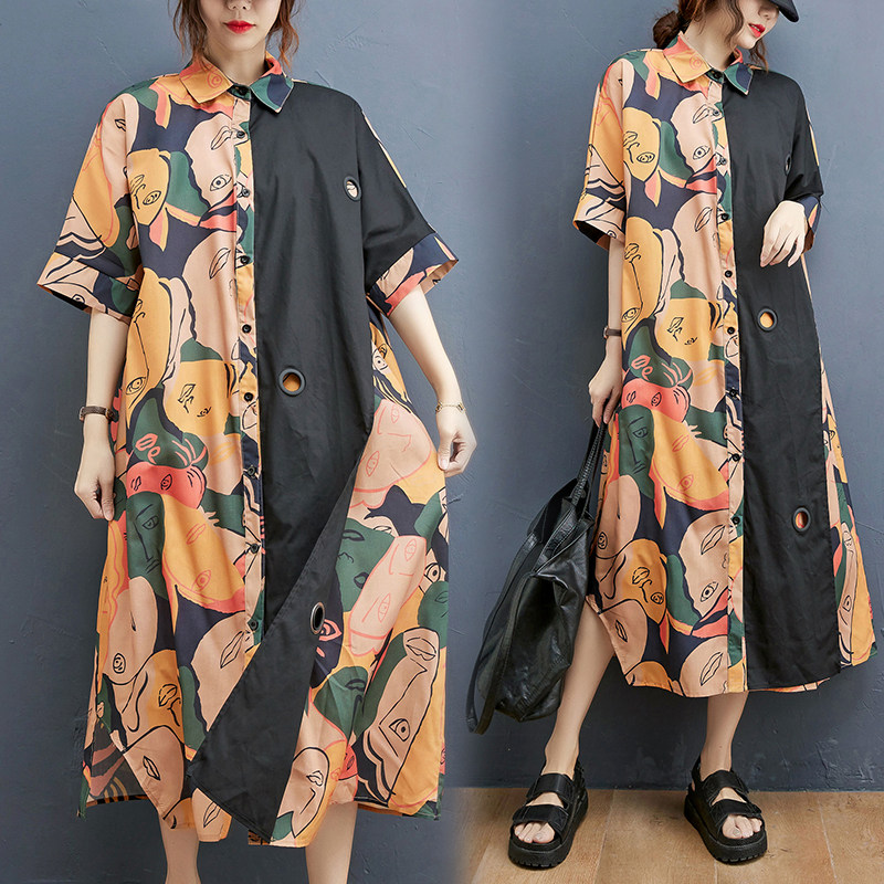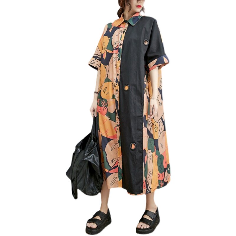 Летняя вместительная и большая длинная рубашка, юбка, платье, большой размер, средней длины, свободный крой