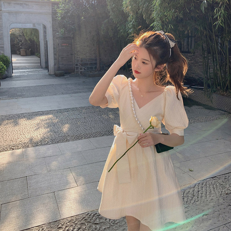 Ретро модное платье, рукава фонарики, французский стиль, подходит для подростков