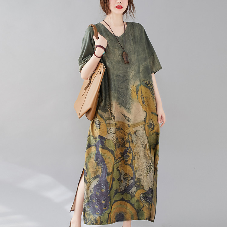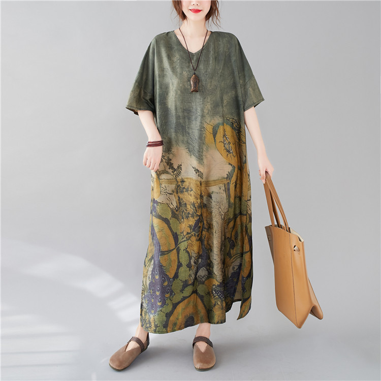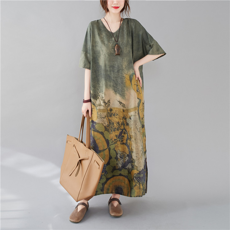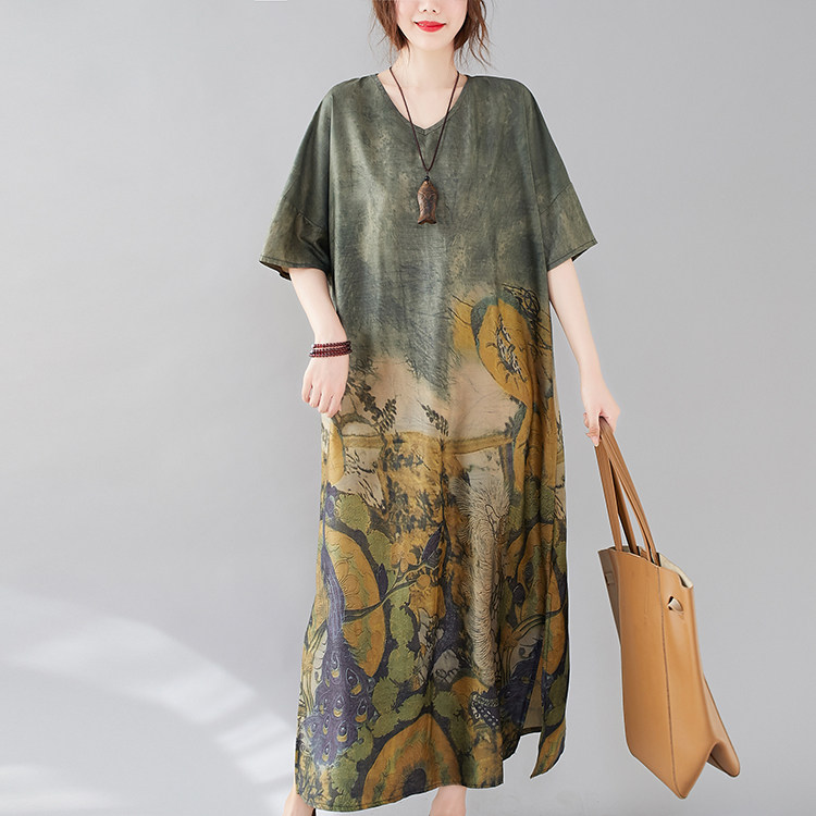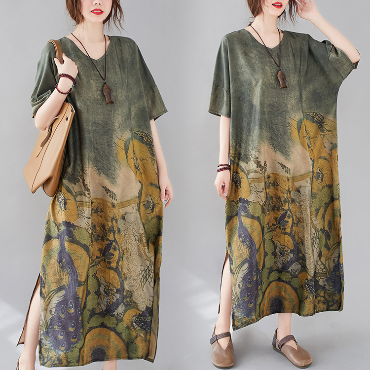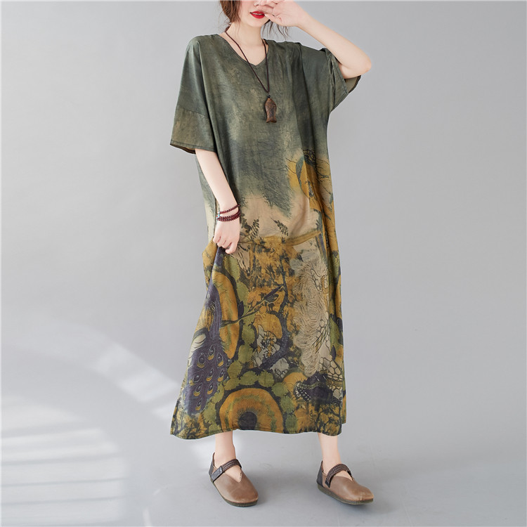 Летнее платье с коротким рукавом, большой размер, в западном стиле, V-образный вырез, подходит для полных девушек, свободный крой