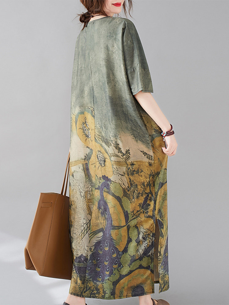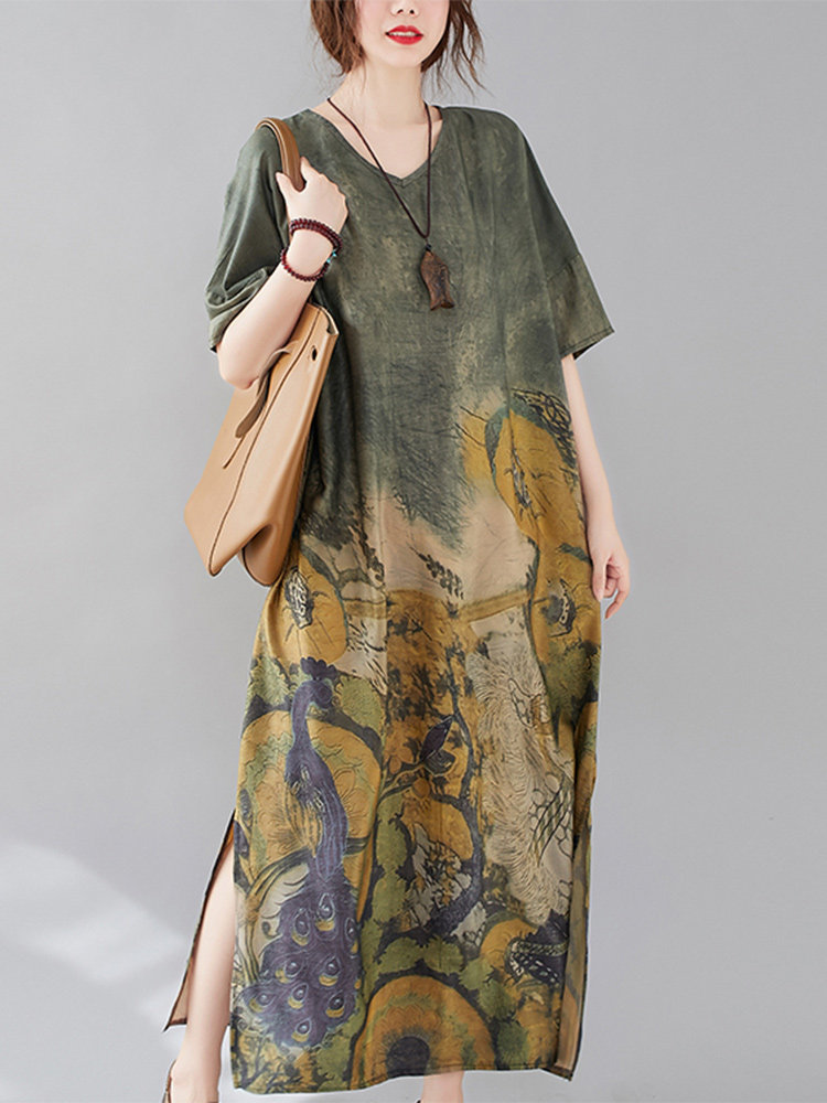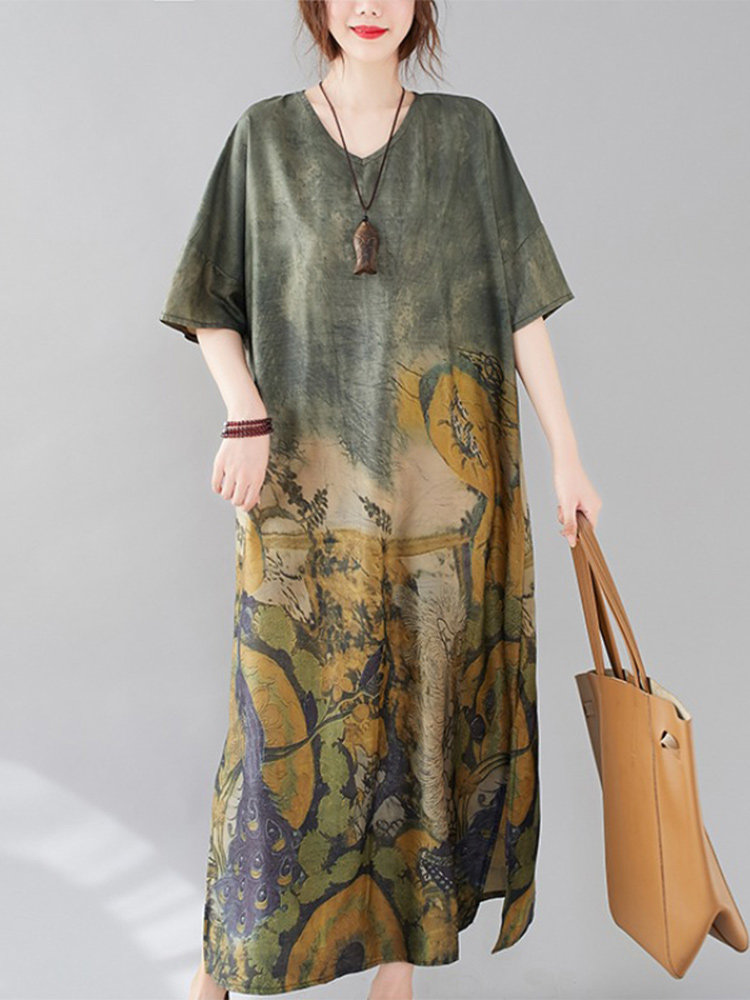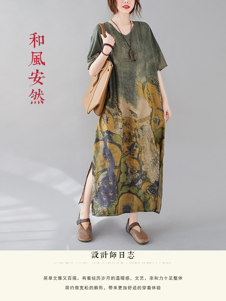 Летнее платье с коротким рукавом, большой размер, в западном стиле, V-образный вырез, подходит для полных девушек, свободный крой