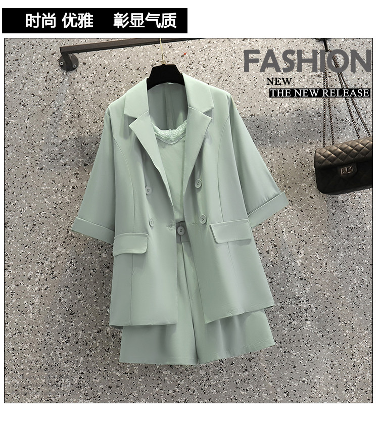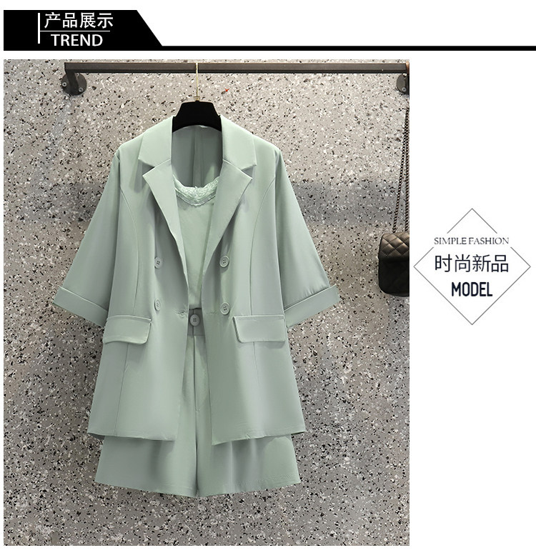 Летний костюм, шорты, комплект, большой размер, подходит для полных девушек, в корейском стиле, эффект подтяжки, в западном стиле, 3 предмета