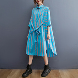 Дизайнерское летнее длинное платье, рубашка, большой размер, тренд сезона, средней длины, длина макси, в западном стиле