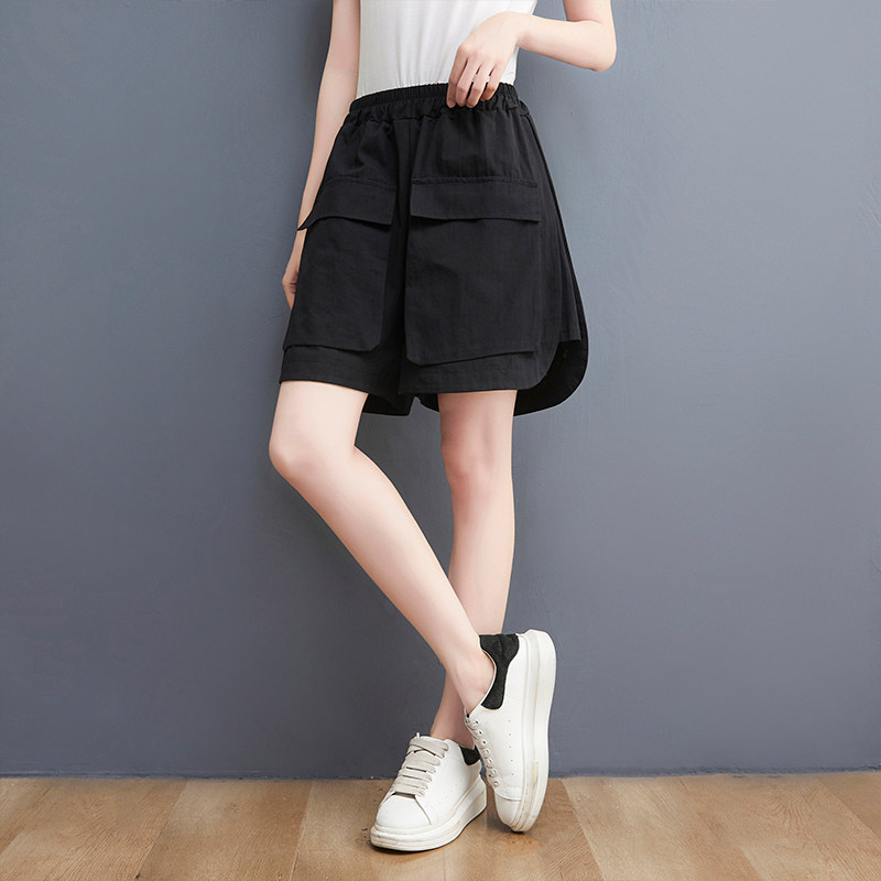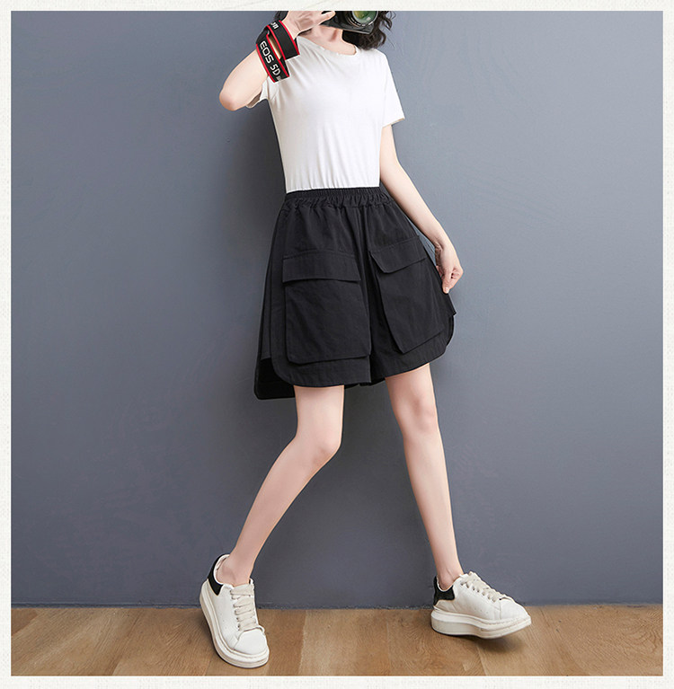 Штаны, шорты, высокая талия, большой размер, свободный прямой крой, стройный силуэт