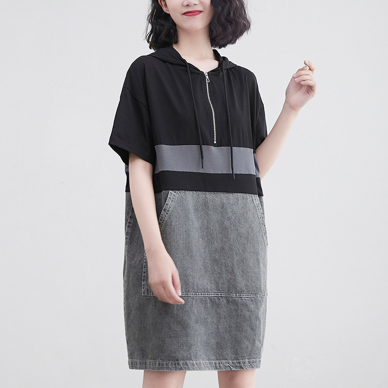 Летнее трикотажное джинсовое платье, большой размер, свободный крой, в западном стиле