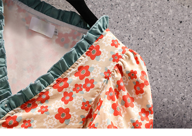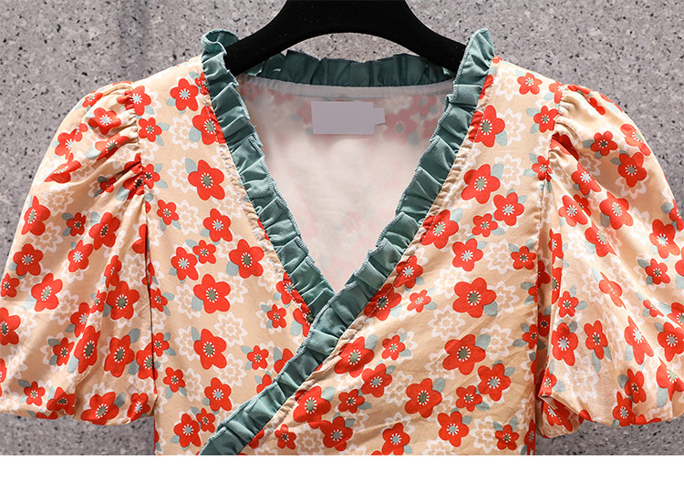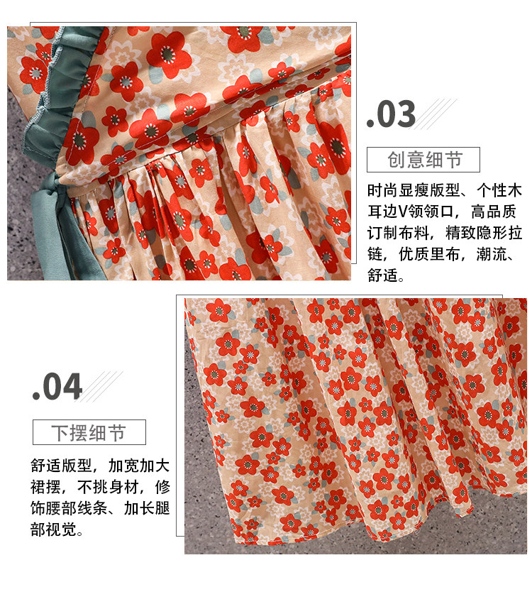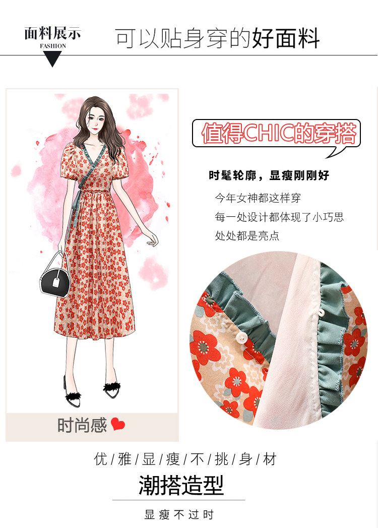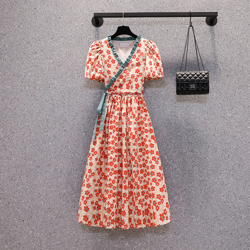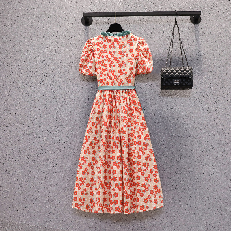 Летний ретро свежий ремень, длинное платье, большой размер, подходит для полных девушек, в корейском стиле, цветочный принт, средней длины