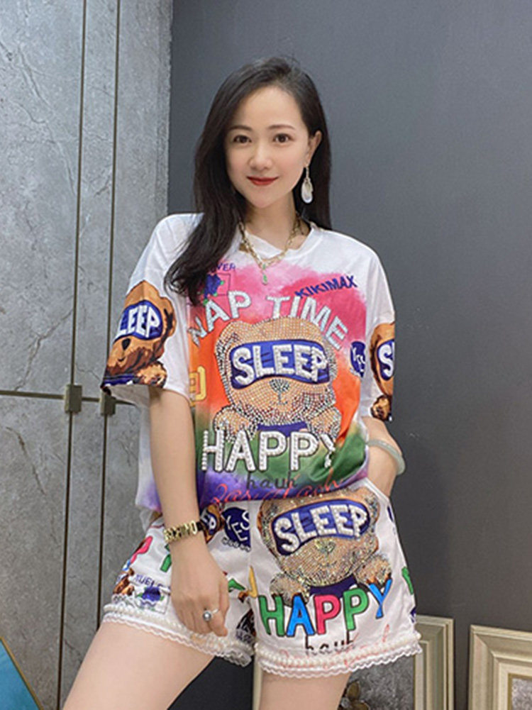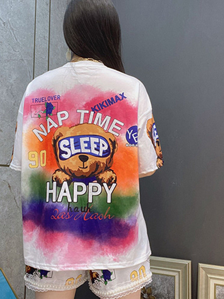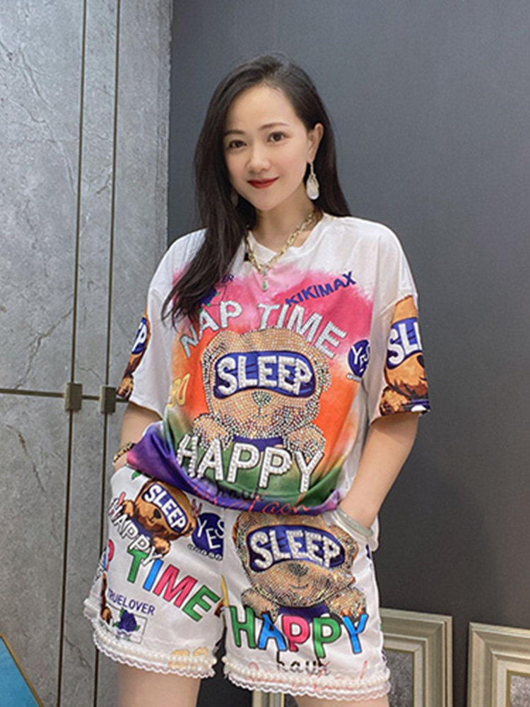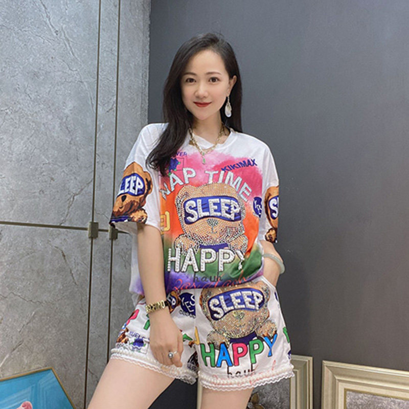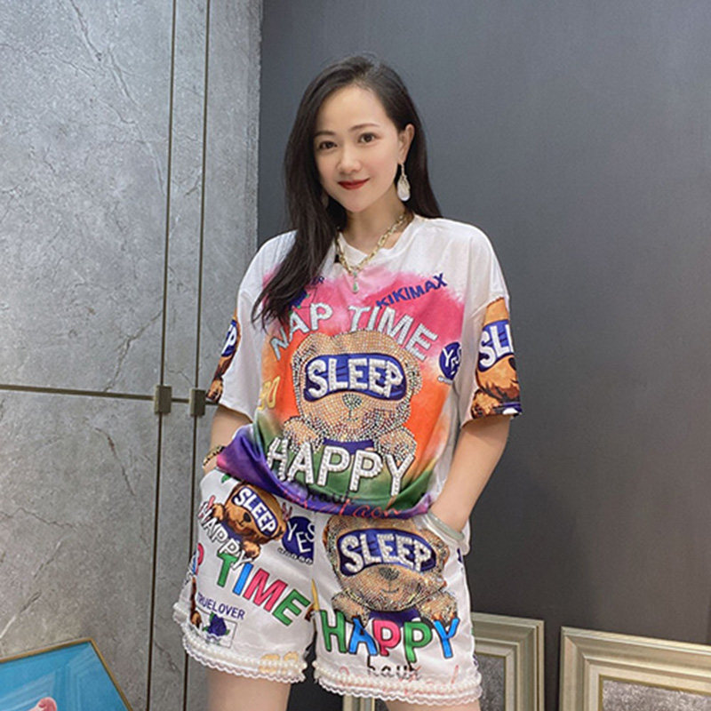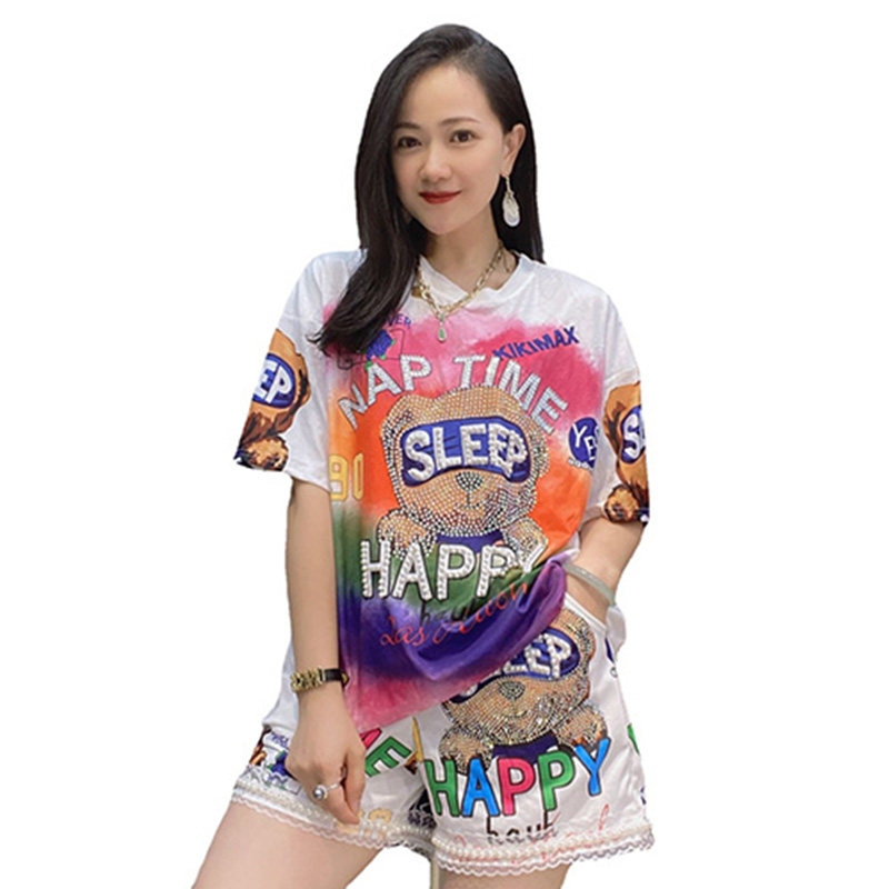 Летние шорты для отдыха, комплект, футболка с коротким рукавом, большой размер