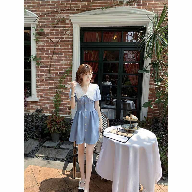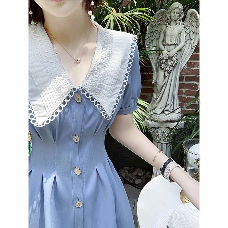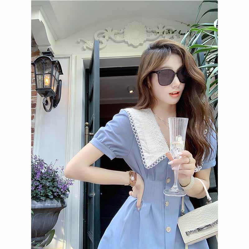 Летний сексуальный приталенный корсет, тонкое синее платье, сезон 2021, французский стиль