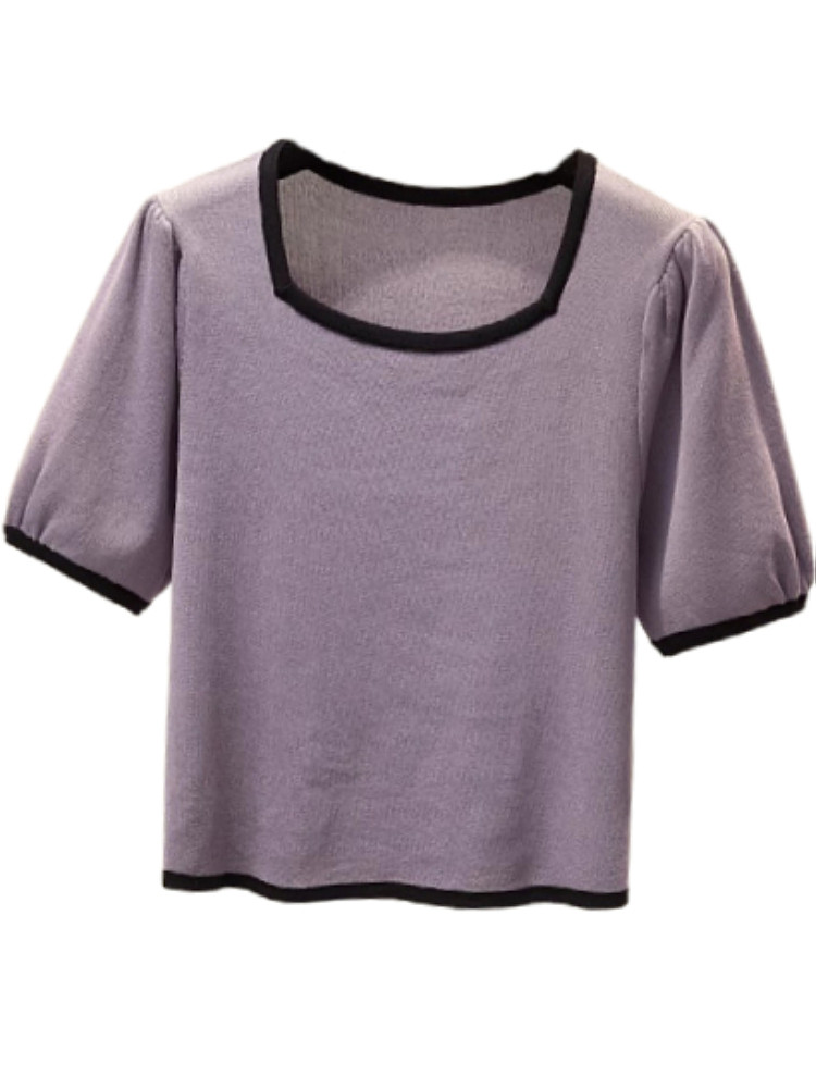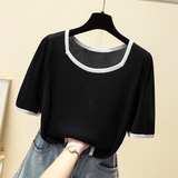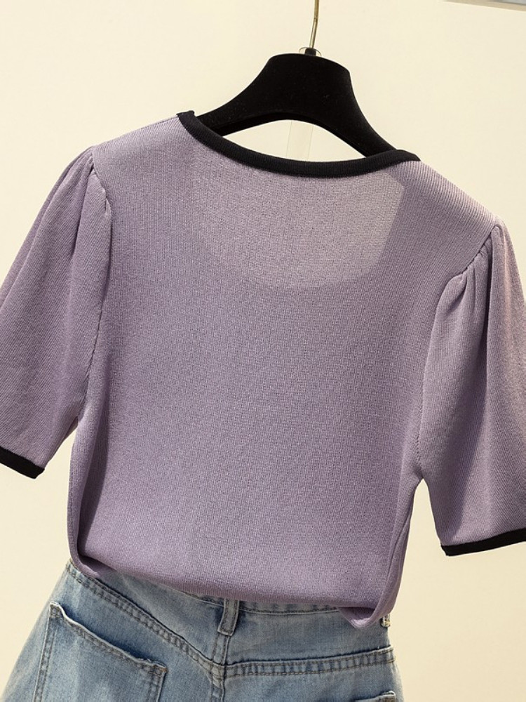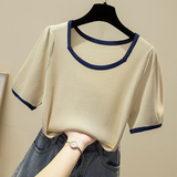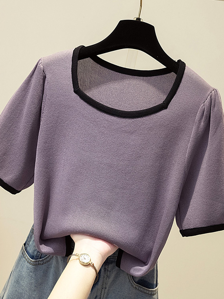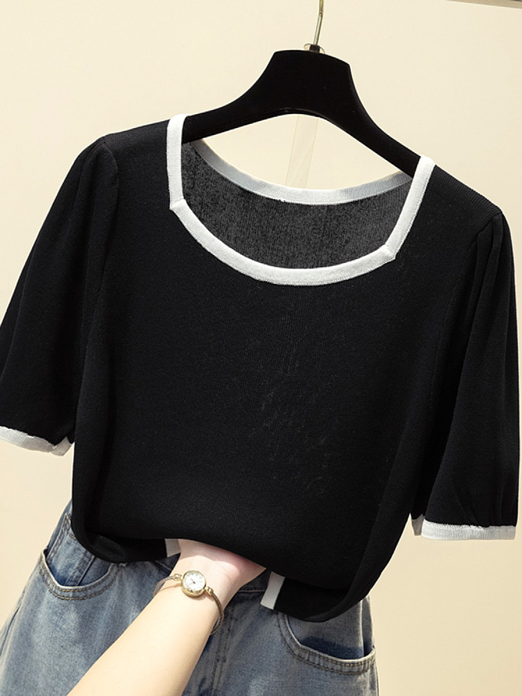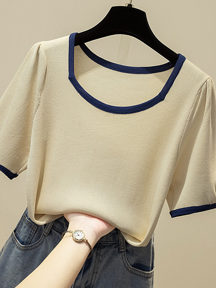 Летняя приятная телу трикотажная футболка, подходит для полных девушек, большой размер, 2024 года, рукава фонарики