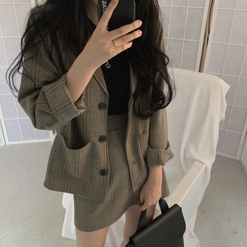 Демисезонный ретро комплект, пиджак классического кроя, юбка, 2021 года, в западном стиле, популярно в интернете